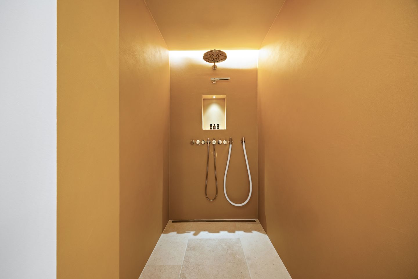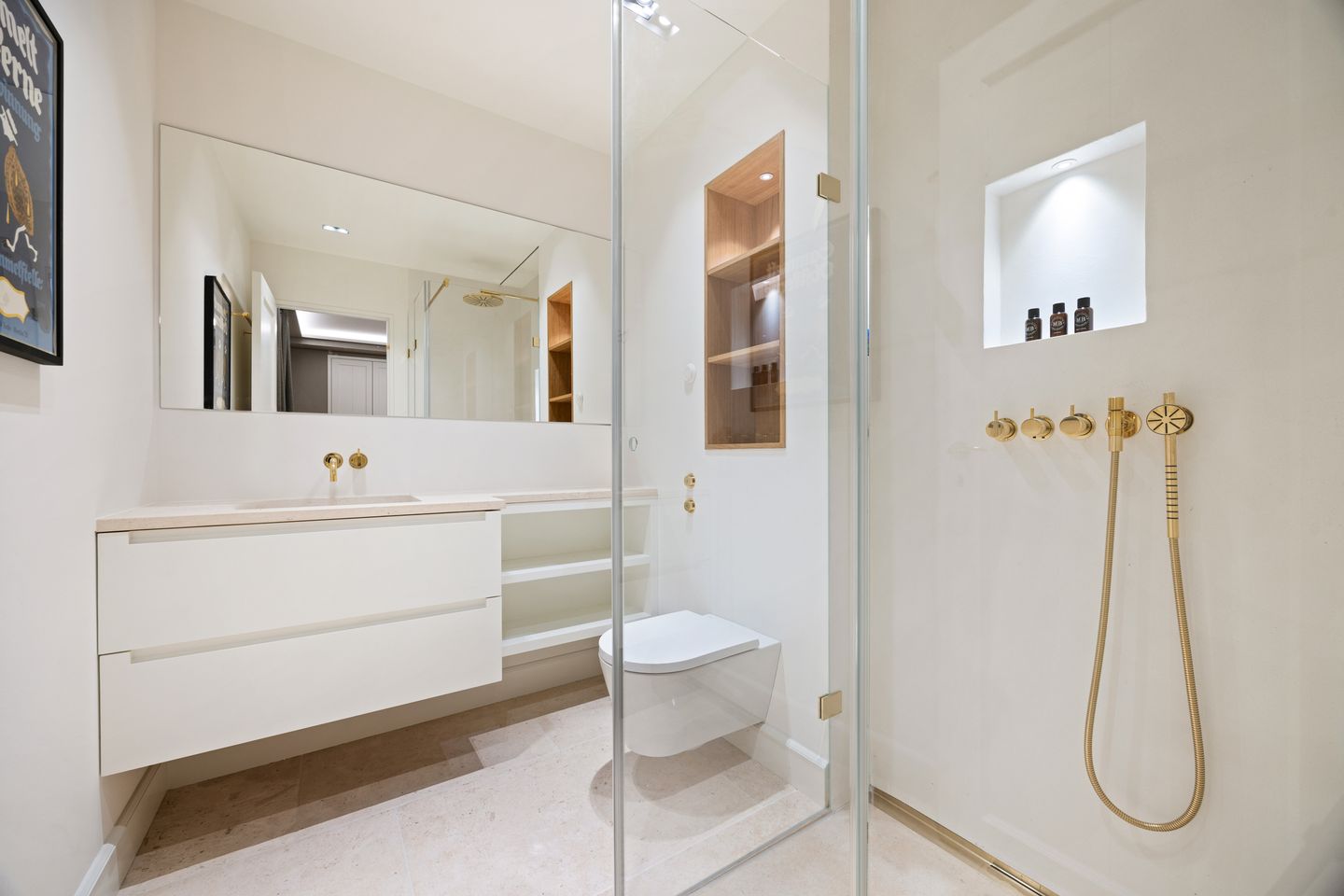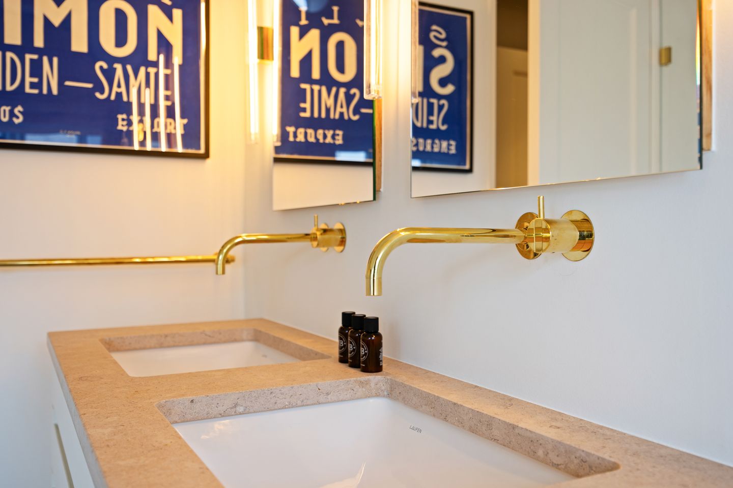 Die vier modernen Badezimmer mit bodengleichen Regenduschen garantieren Ihnen ein luxuriöses Duscherlebnis. Hochwertige Armaturen und stilvolle Gestaltung schaffen ein harmonisches Ambiente. Zusätzlich steht ein separates Gäste-WC zur Verfügung.