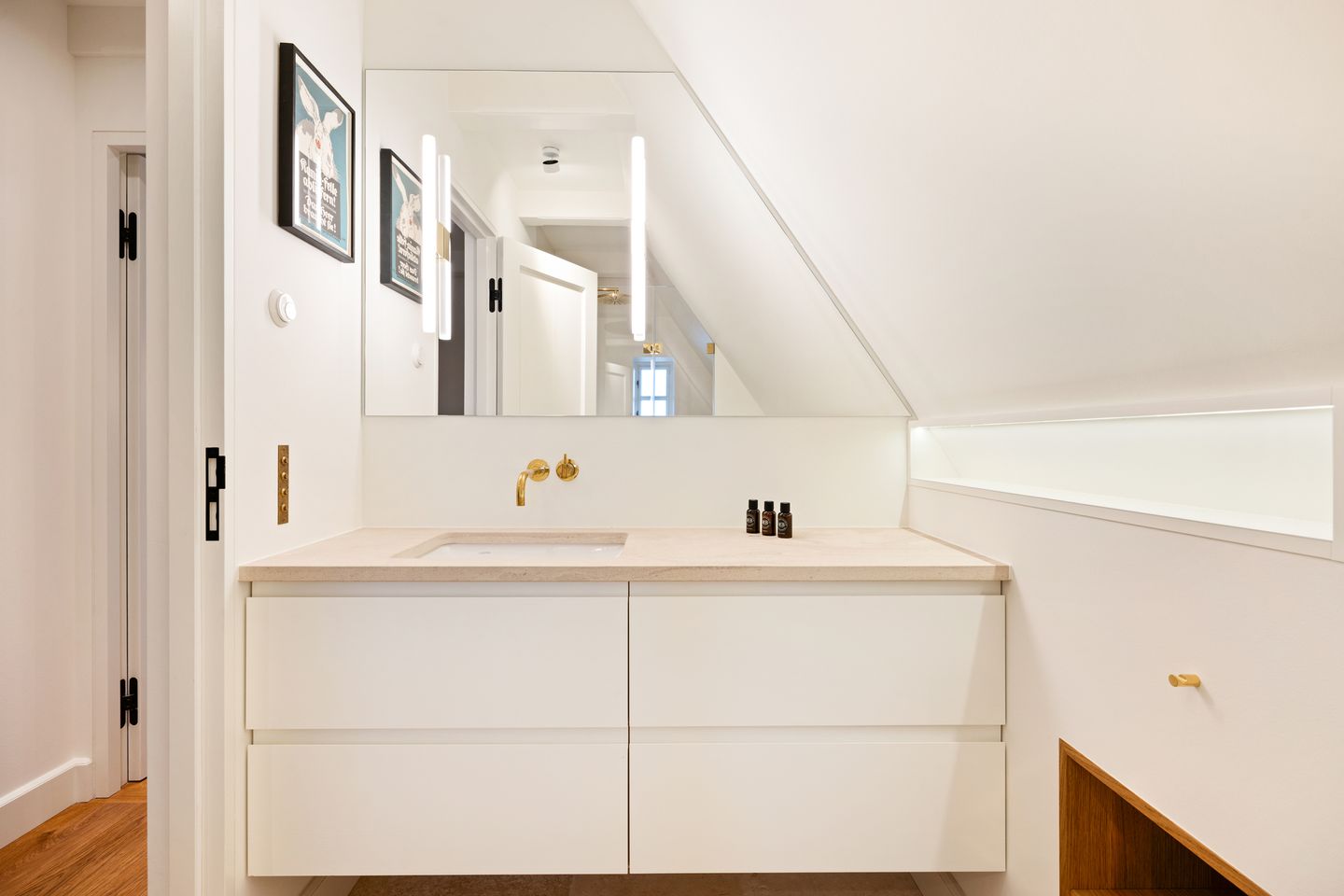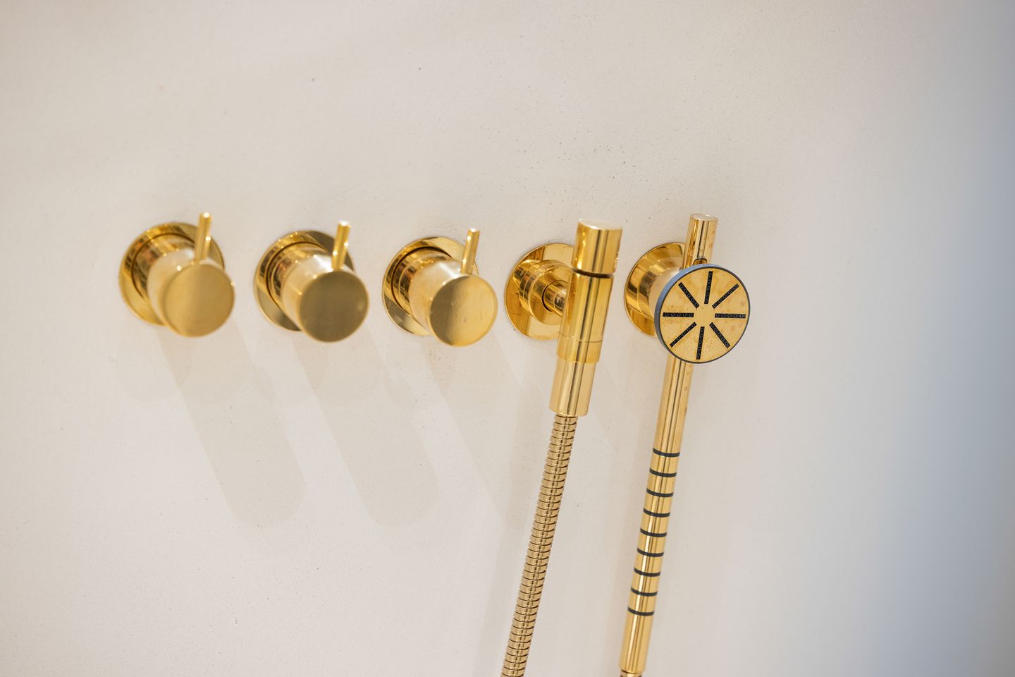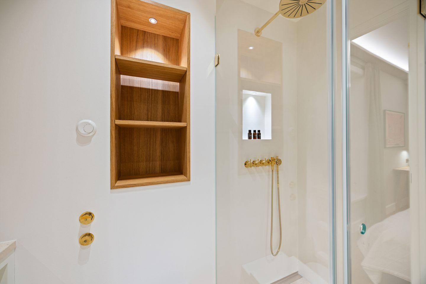Die vier modernen Badezimmer mit bodengleichen Regenduschen garantieren Ihnen ein luxuriöses Duscherlebnis. Hochwertige Armaturen und stilvolle Gestaltung schaffen ein harmonisches Ambiente. Zusätzlich steht ein separates Gäste-WC zur Verfügung.