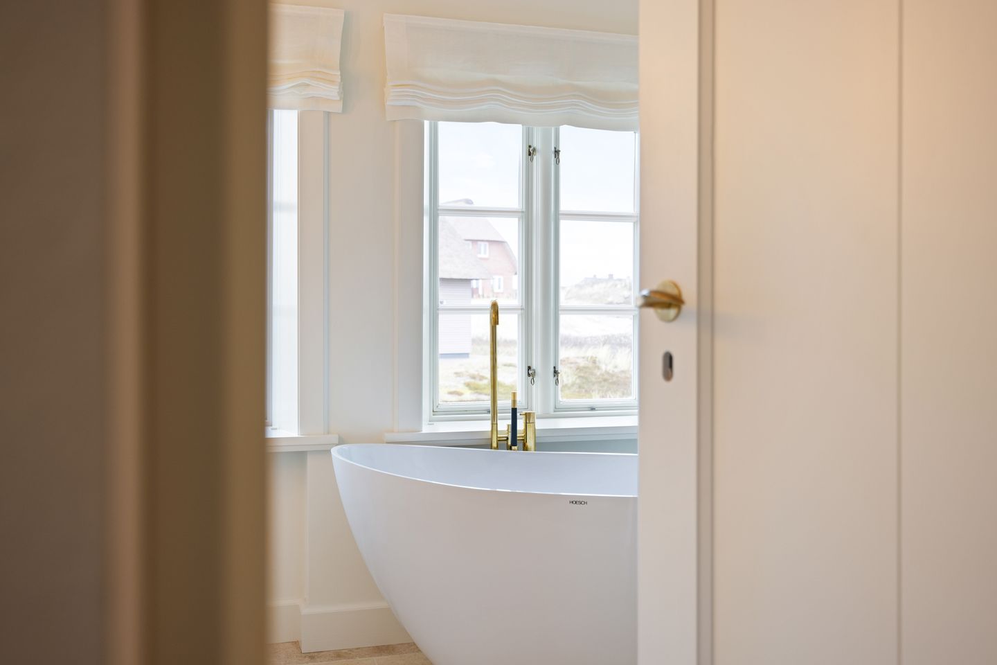 In den vier modernen Badezimmern mit hochwertigen Armaturen erwarten Sie bodengleiche Regenduschen, die ein barrierefreies Duschvergnügen garantieren. Ein separates Gäste-WC bietet zusätzlichen Komfort. Ein besonderes Highlight des Hauses ist der private Wellnessbereich mit Sauna, Regendusche und Ruhebereich. Hier können Sie nach einem erlebnisreichen Tag am Strand entspannen und neue Energie tanken.
