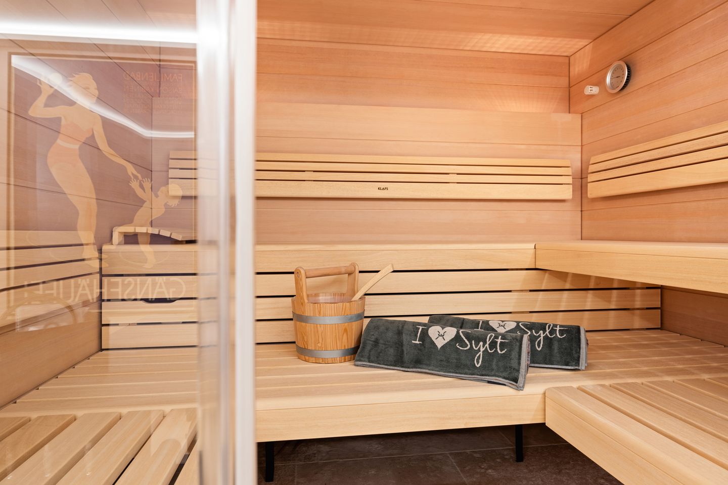 Ein besonderes Highlight des Hauses ist der private Wellnessbereich mit eigener Sauna. Lassen Sie den Alltag hinter sich und genießen Sie erholsame Momente der Entspannung nach einem ausgiebigen Strandspaziergang. Eine Fußbodenheizung sorgt für angenehme Wärme im gesamten Haus.