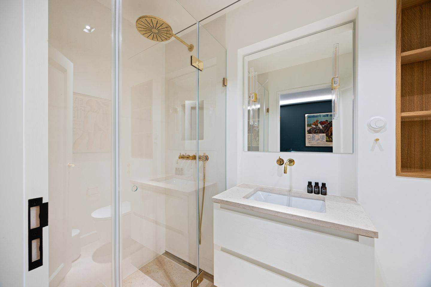Jedes Schlafzimmer verfügt über ein eigenes Bad, das Ihnen maximalen Komfort und Privatsphäre bietet. Hochwertige Einbauschränke bieten viel Stauraum, und ein Schreibtisch in jedem Zimmer schafft einen perfekten Rückzugsort für kreative oder geschäftliche Tätigkeiten. Zwei Schlafzimmer verwöhnen Sie zudem mit einem atemberaubenden Blick auf das Meer – der perfekte Ort zum Träumen.