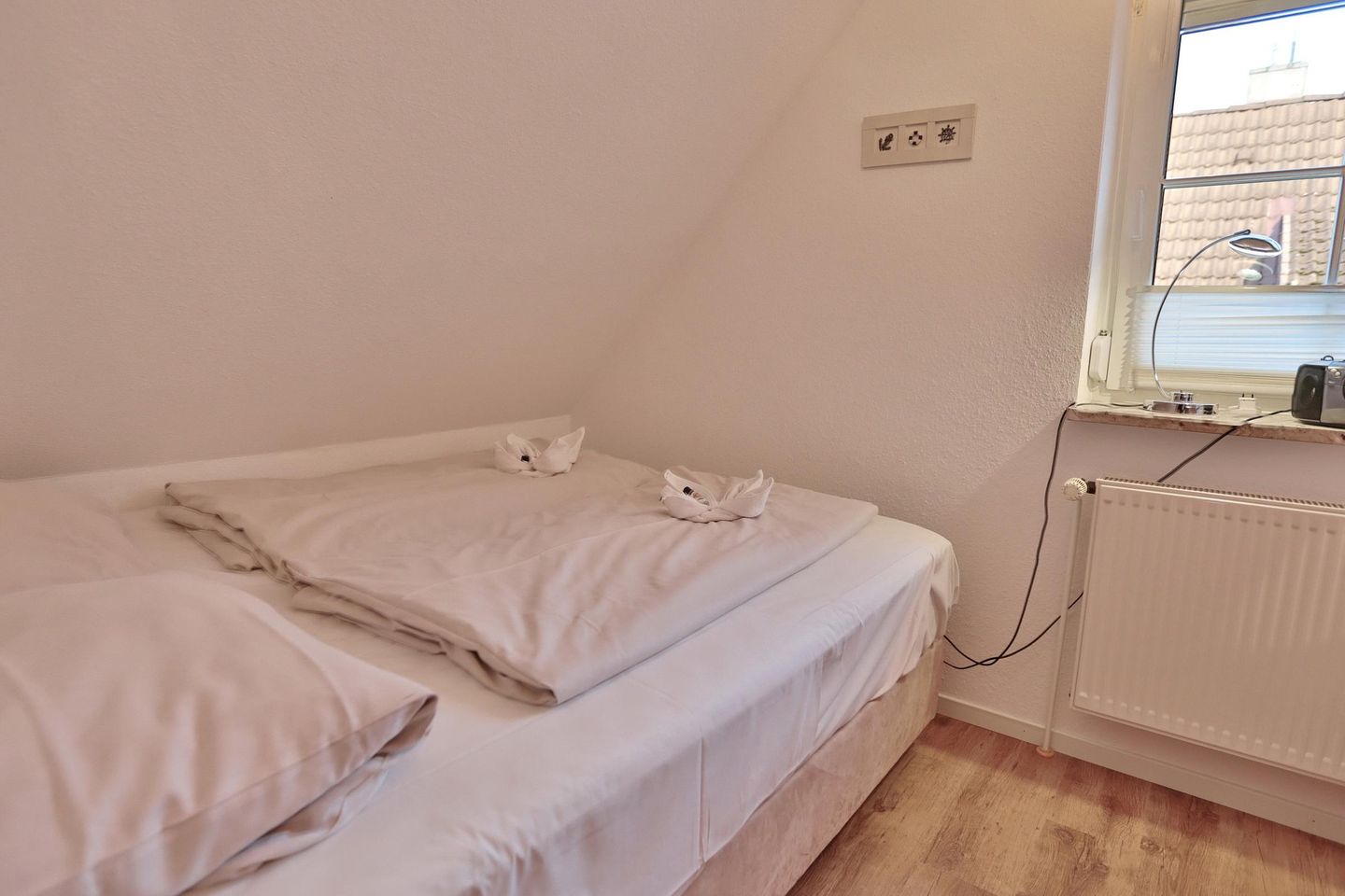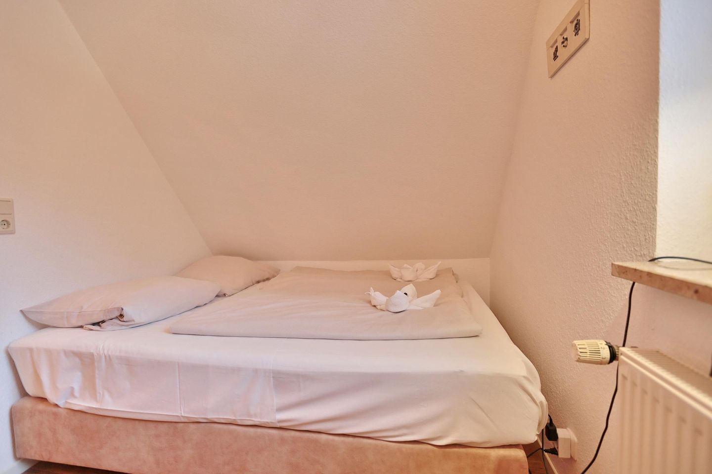 Das zweite kleinere Schlafzimmer verfügt über ein gemütliches Boxspringbett (160cm x 200cm).