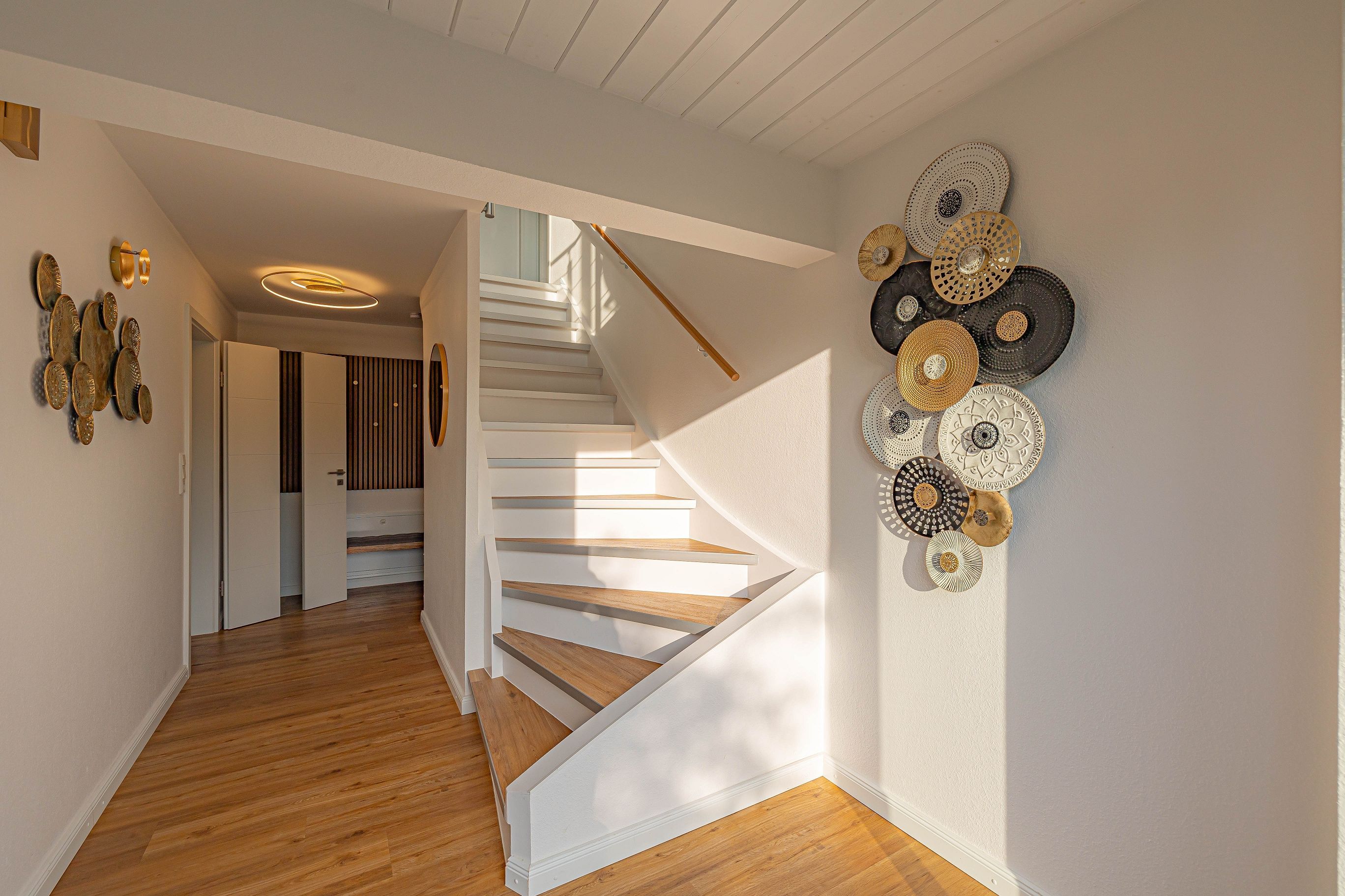 - großzügiger Flur mit Treppenauf- u. Abgang, Garderobe, Spiegel, Sitzbank