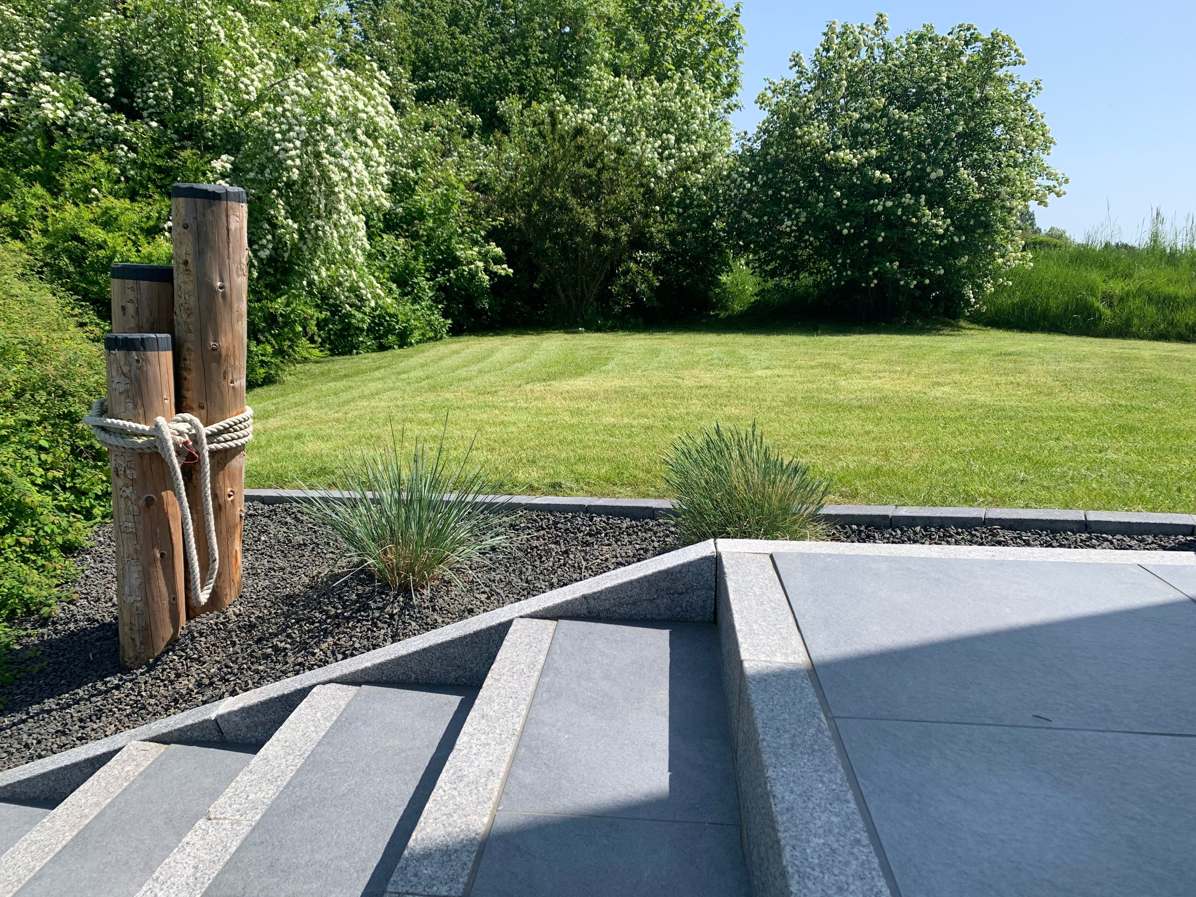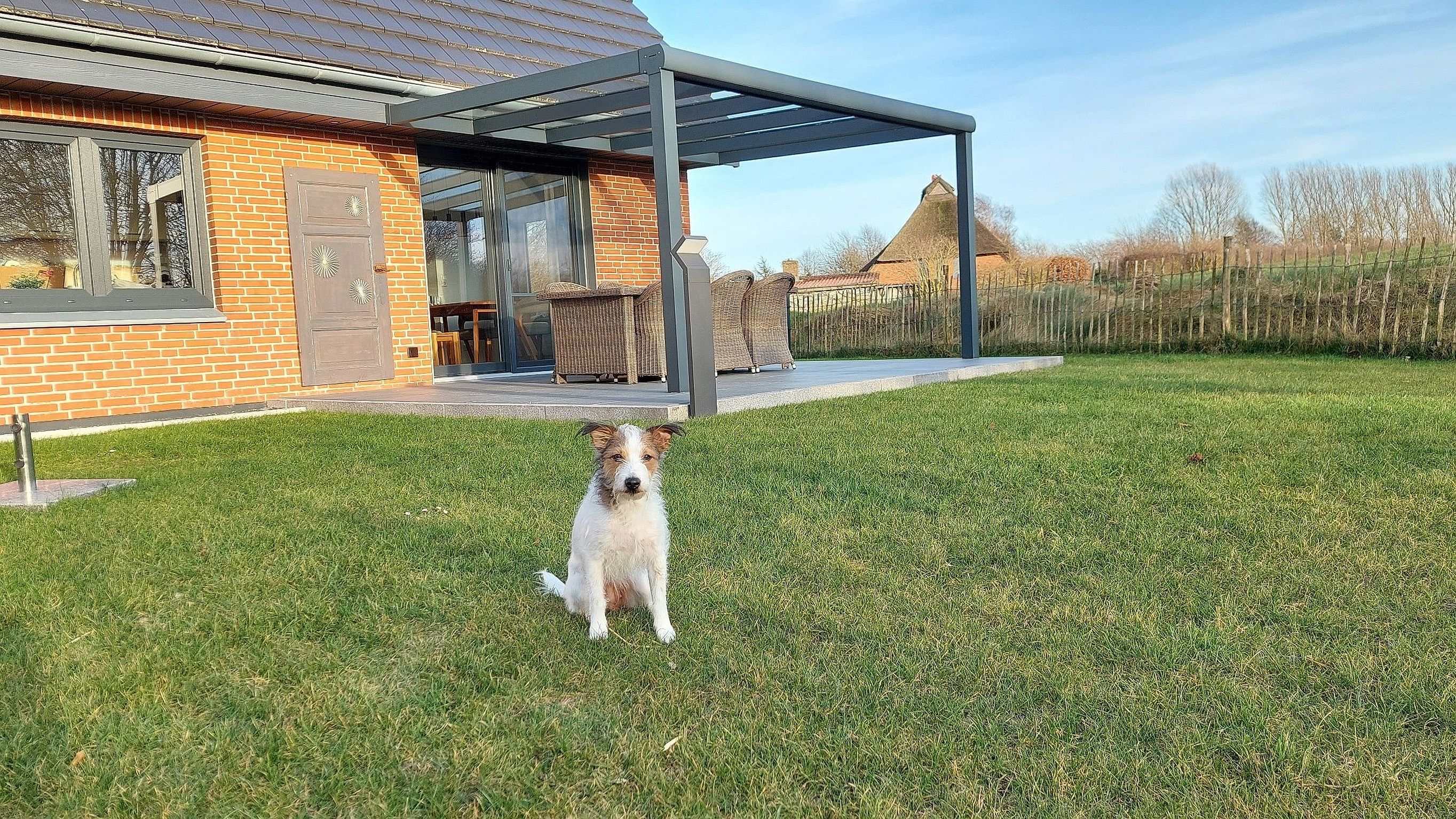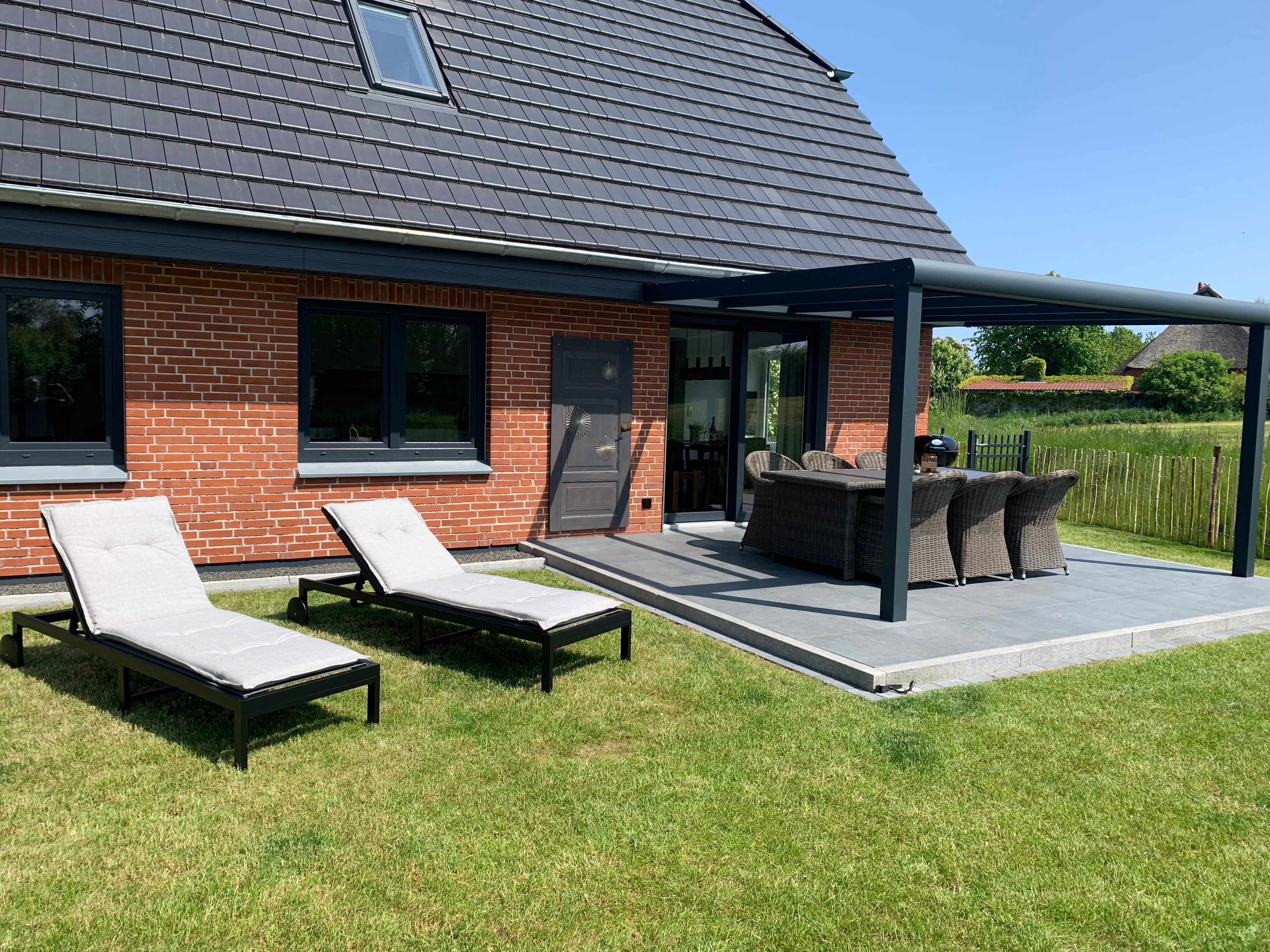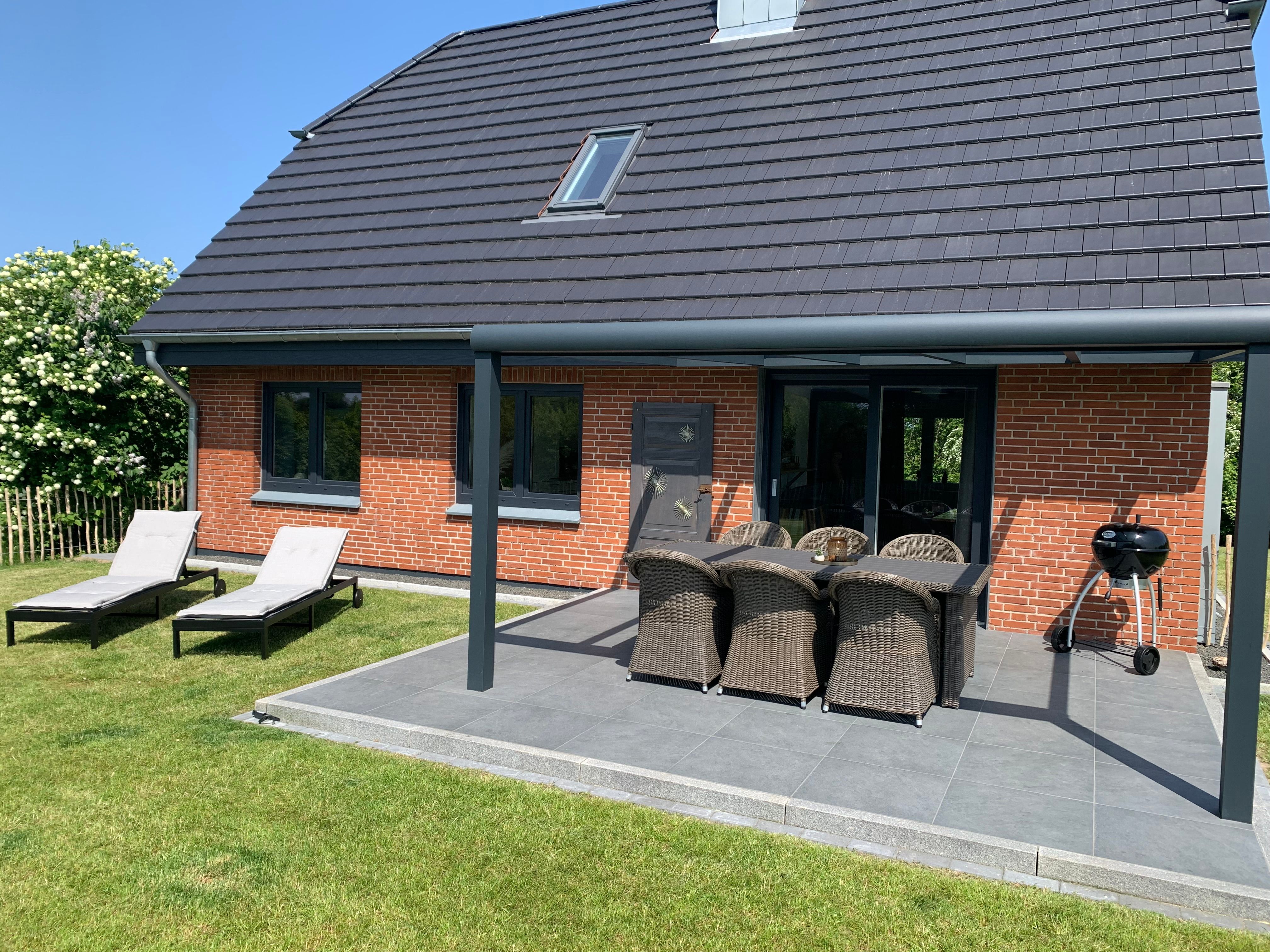 - Möblierte und überdachte Sonnenterrasse, Gartenmöbel, Grill, Gartenliegen, Auflagen, Sonnenschirm, Außenhundedusche, zur Süd-West Seite
