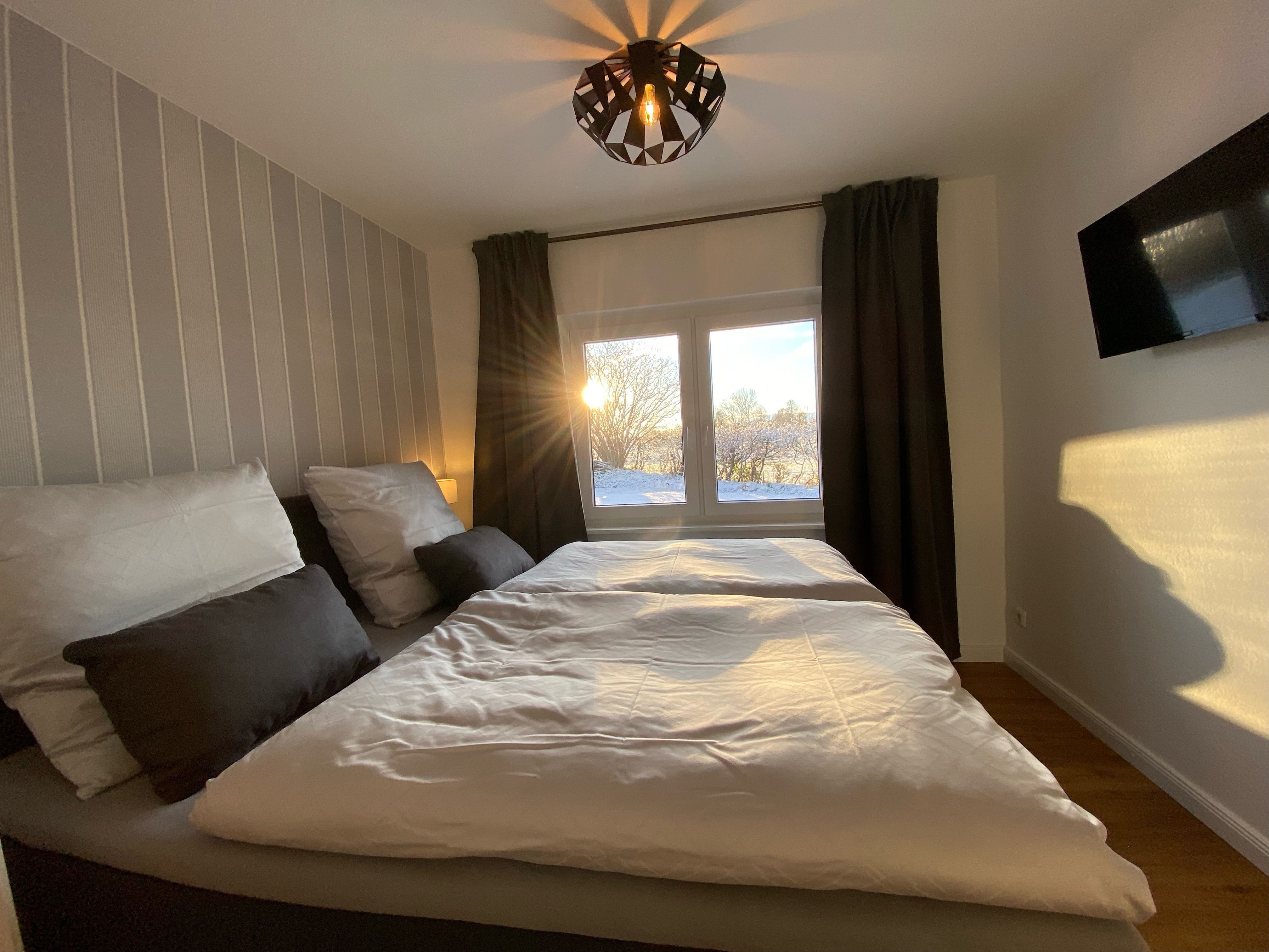 - 1 Schlafraum mit Boxspringbett (180x200), Kleiderschrank, Smart-TV