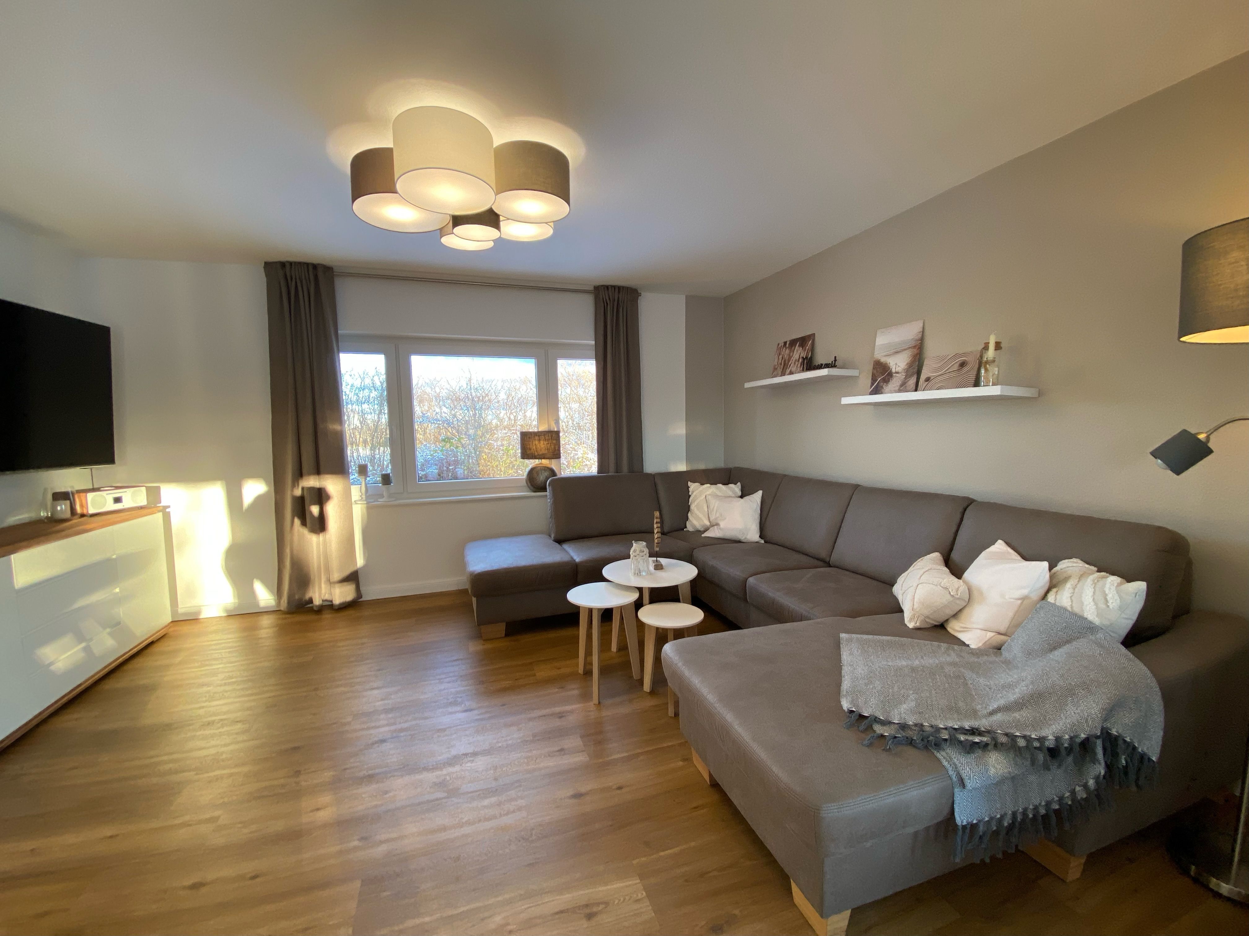 - Stilvoll und moderner offener Wohn-Essbereich mit angrenzendem Tresen und Barstühlen zur offenen und voll ausgestatteten Küche (Mikrowelle, Geschirrspüler, Tiefkühler u.v.m.) Vom Essbereich gelangen Sie direkt auf die überdachte Terrasse mit Blick in den Garten und Felder