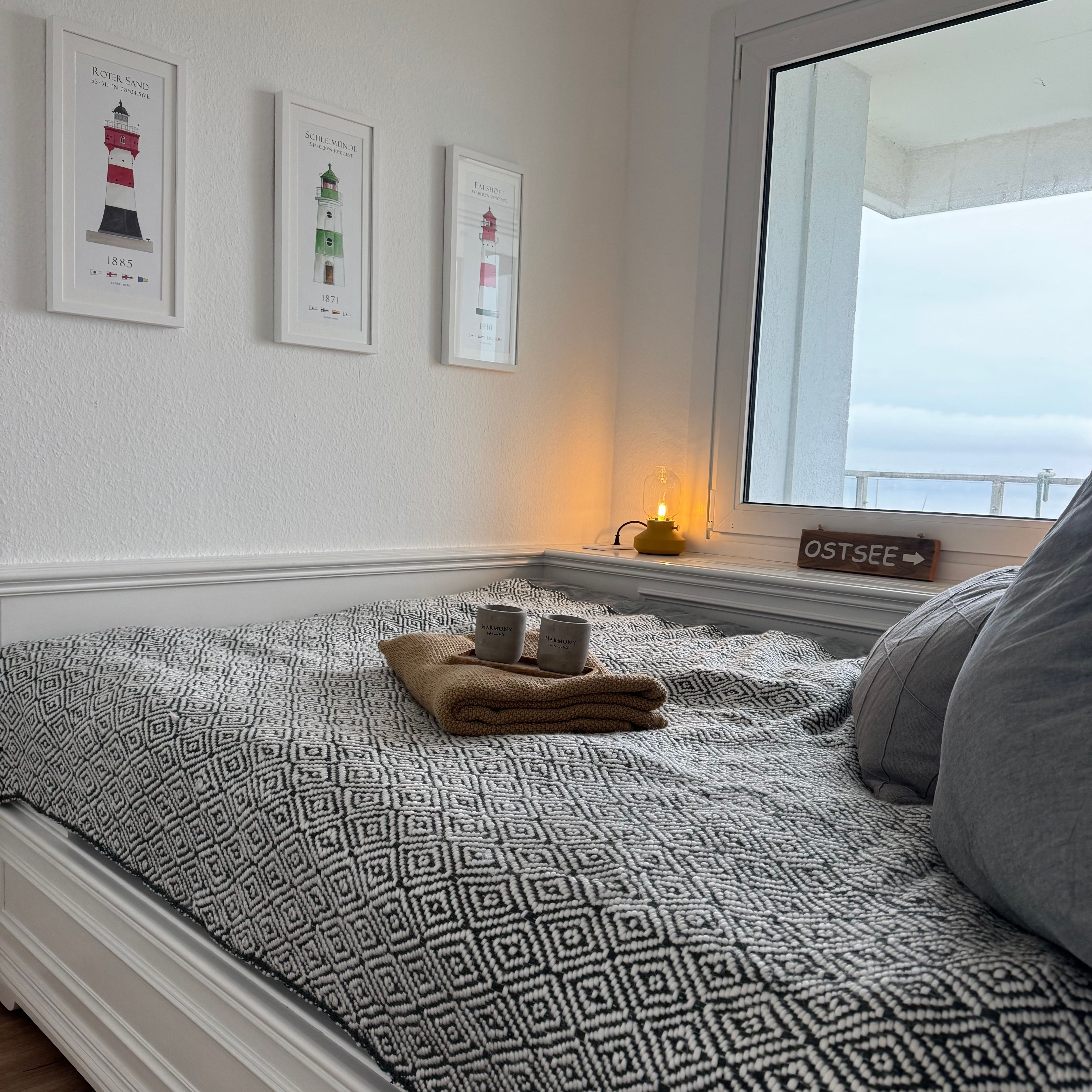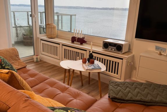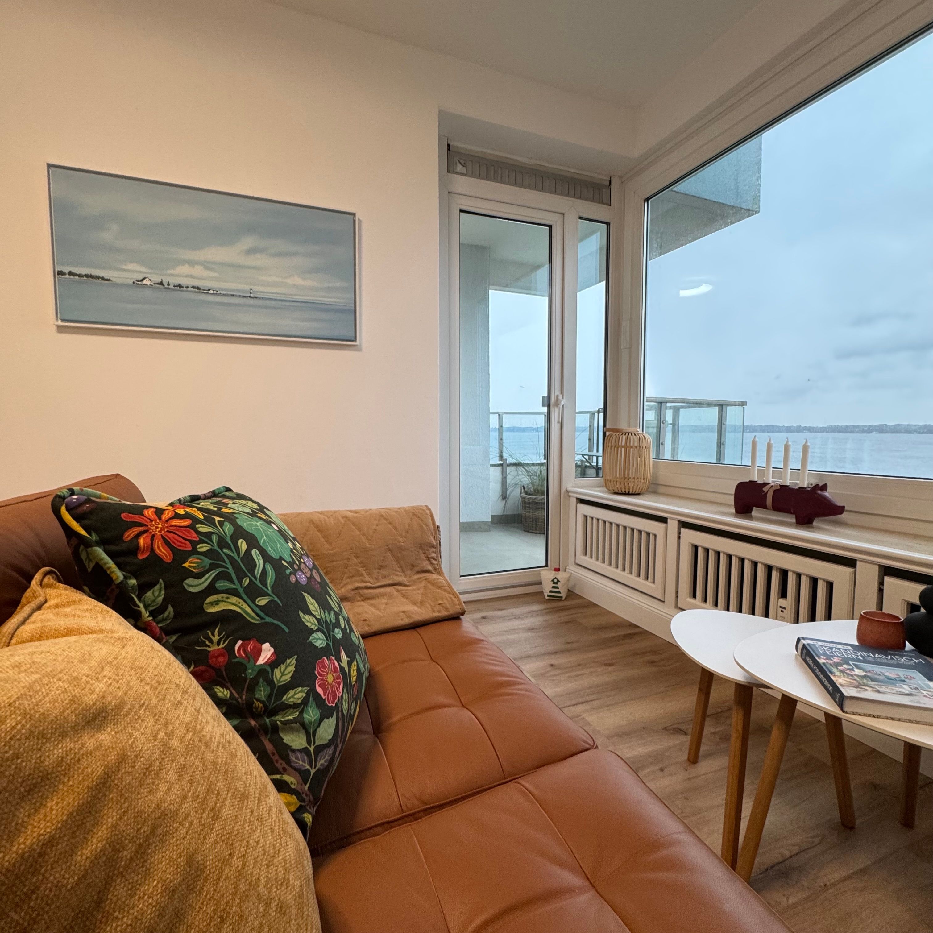 Schon beim betreten der Wohnung , vom Esstisch, vom Sofa oder aus dem Bett heraus, können Sie jederzeit den atemberaubenden Blick über die Flensburger Förde und Dänemark genießen.