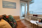 Die 34 Quadratmeter große Wohnung verfügt über einen Balkon mit Meerblick, ein separates Schlafzimmer mit einem 140 cm großem französischen Bett und Einbauschränken, einem Wohn-/Esszimmer, eine kleine gut ausgestattete Küche sowie einem Badezimmer mit einer Badewanne. Außerdem befindet sich im Flur ein großer Einbauschrank und Garderobe.