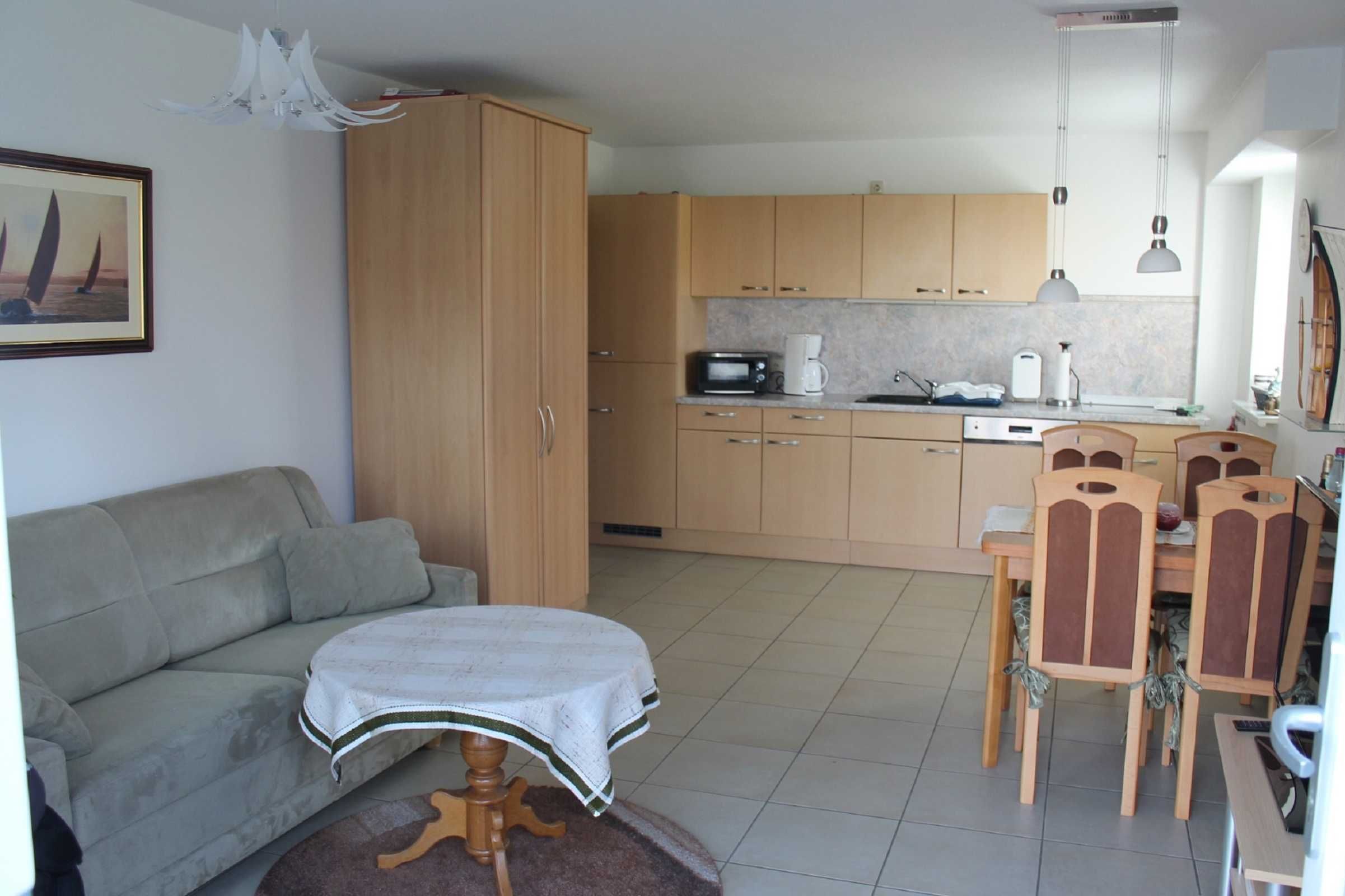 Gemütliche und geschmackvoll eingerichtete Ferienwohnung (Baujahr 2010) in einem Einfamilienhaus im ausgebauten Souterrainbereich. Im Wohnbereich befindet sich eine seniorengerechte (1,86 x 1,90 m) Schlafcouch. Der Sanitär- und Wohnbereich ist mit einer Fußbodenheizung ausgestattet. In der hauseigenen Garage können mitgebrachte Fahrräder sicher untergestellt werden.