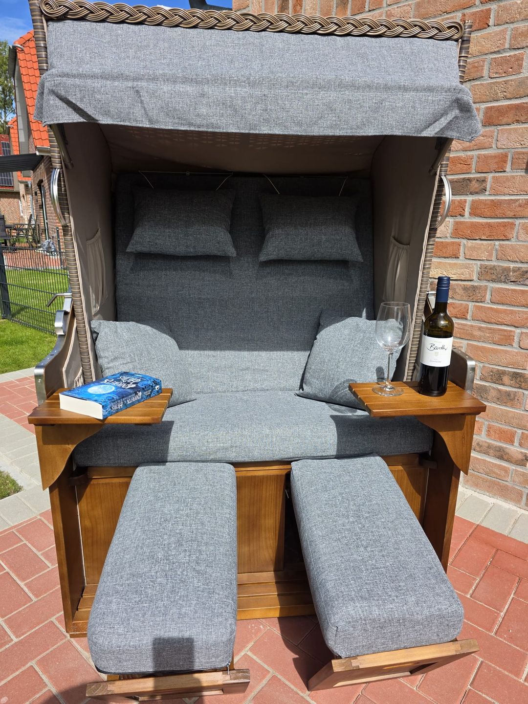 Damit Sie sich auf den Weg nach Greetsiel machen können, steht Ihnen Strom im Gartenhaus zur Verfügung, um Ihre mitgebrachten E-Bikes aufladen zu können. Um den Abend am Grill ausklingen zu lassen, steht Ihnen ein Holzkohlegrill zur Verfügung. Die Feuerschale im Garten sorgt für den perfekten Flair auf dem Wassergrundstück. Die Sonne können Sie auf der möblierten Terrasse (Überdachung folgt) oder aber auf den Gartenliegen auskosten.