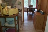 Im Wohnbereich gibt es ein Ecksofa, einen Esstisch mit Stühlen. Ein TV mit DVD Player ist ebenso wie ein Radio vorhanden.