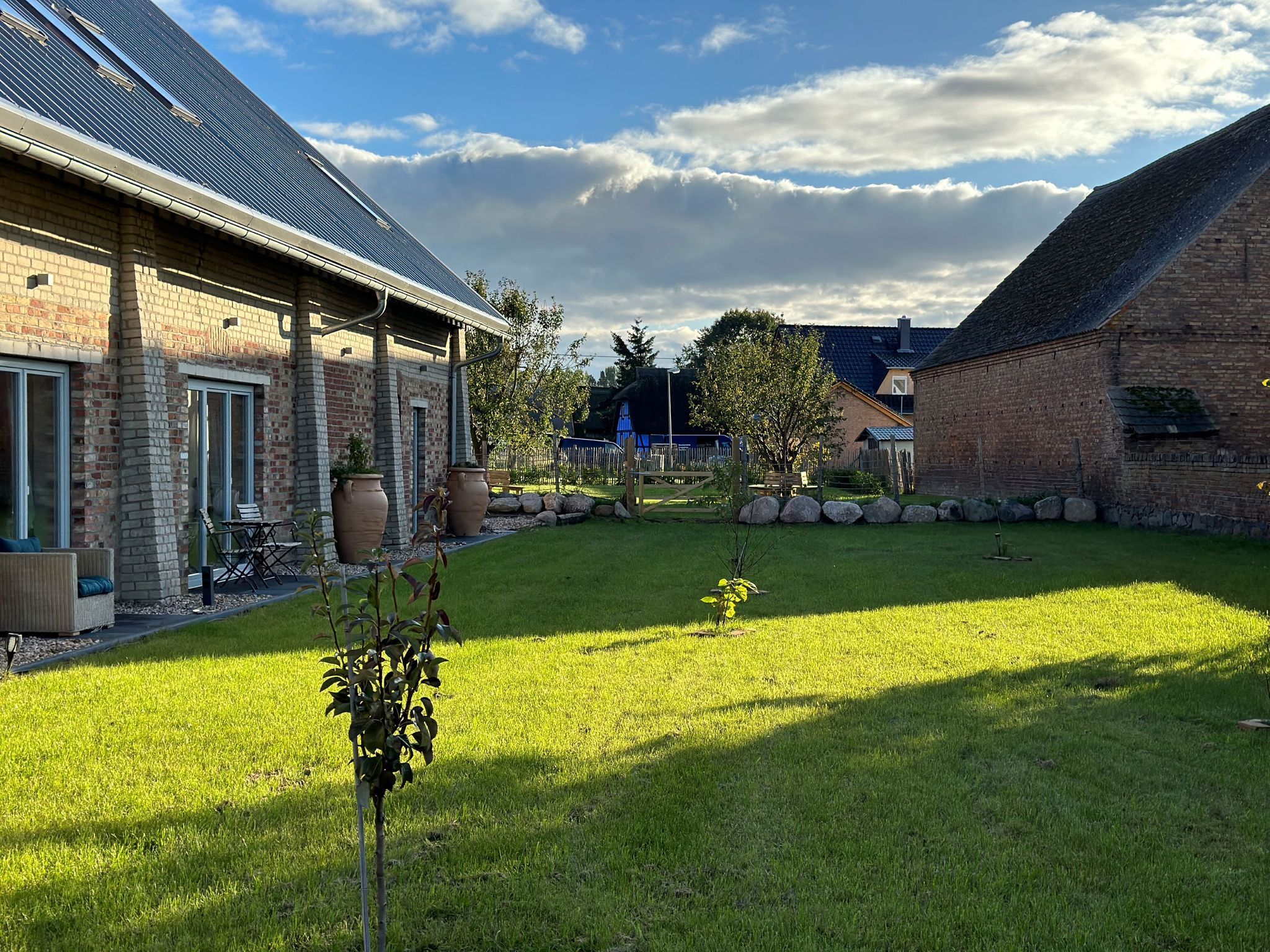 • Das weitläufige 11.000 Quadratmeter große Grundstück bietet nicht nur viel Platz zum Entspannen, sondern auch direkte Nähe zur Natur. mit weitem Blick in die umliegenden Felder.