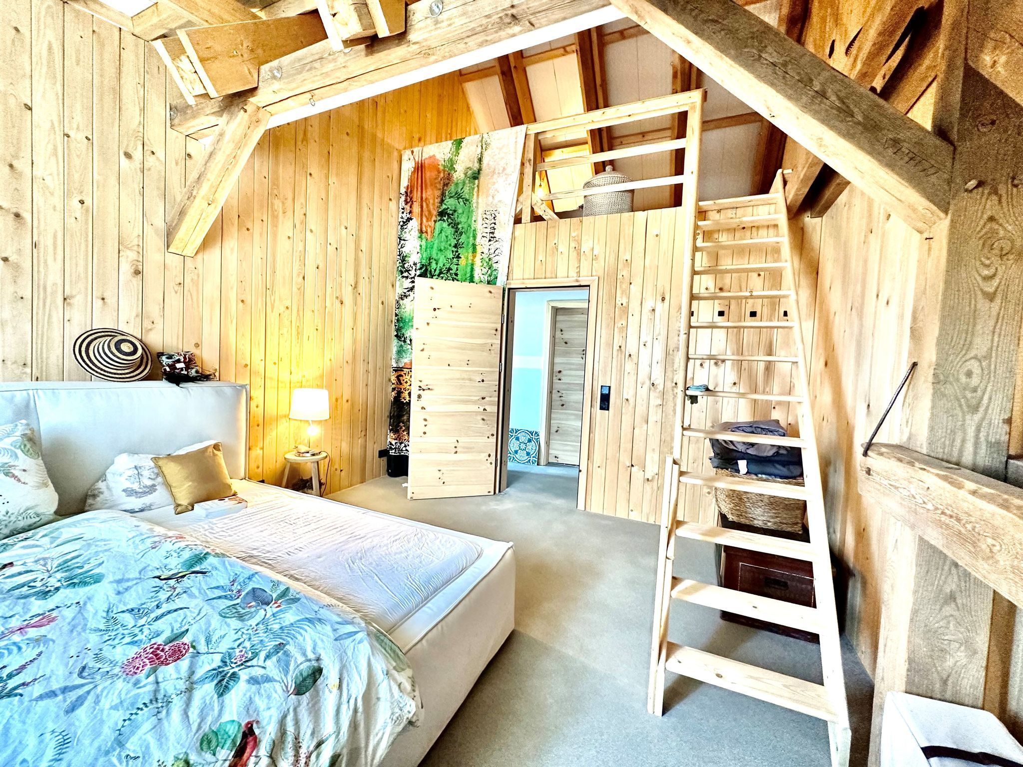 Wir, eine Künstler-, Musiker- und Sammlerfamilie, laden Sie ein, unser in den Jahren 2021 bis 2022 umgebautes Bauernhaus zu entdecken. Ursprünglich ein Pferdestall inmitten eines Vierseitenhofes aus dem Jahr 1890, wurde es mit viel Liebe und ökologischen Materialien im industriellen Scheunen-Stil umgebaut und im Boutiquestil eingerichtet.