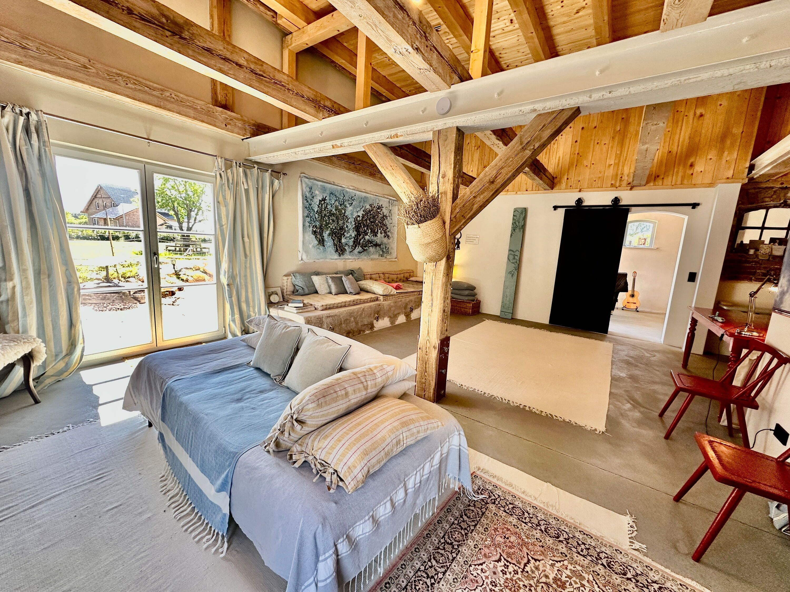 Zusätzlich nutzbare multifunktionale Scheune: Ideal für Künstler als Atelier oder als Lagerraum für Oldtimer und Boote im Winter. Im Sommer nutzbar als außergewöhnlicher Veranstaltungsort oder Atelier perfekt für lange Tafeln oder kreative Projekte.