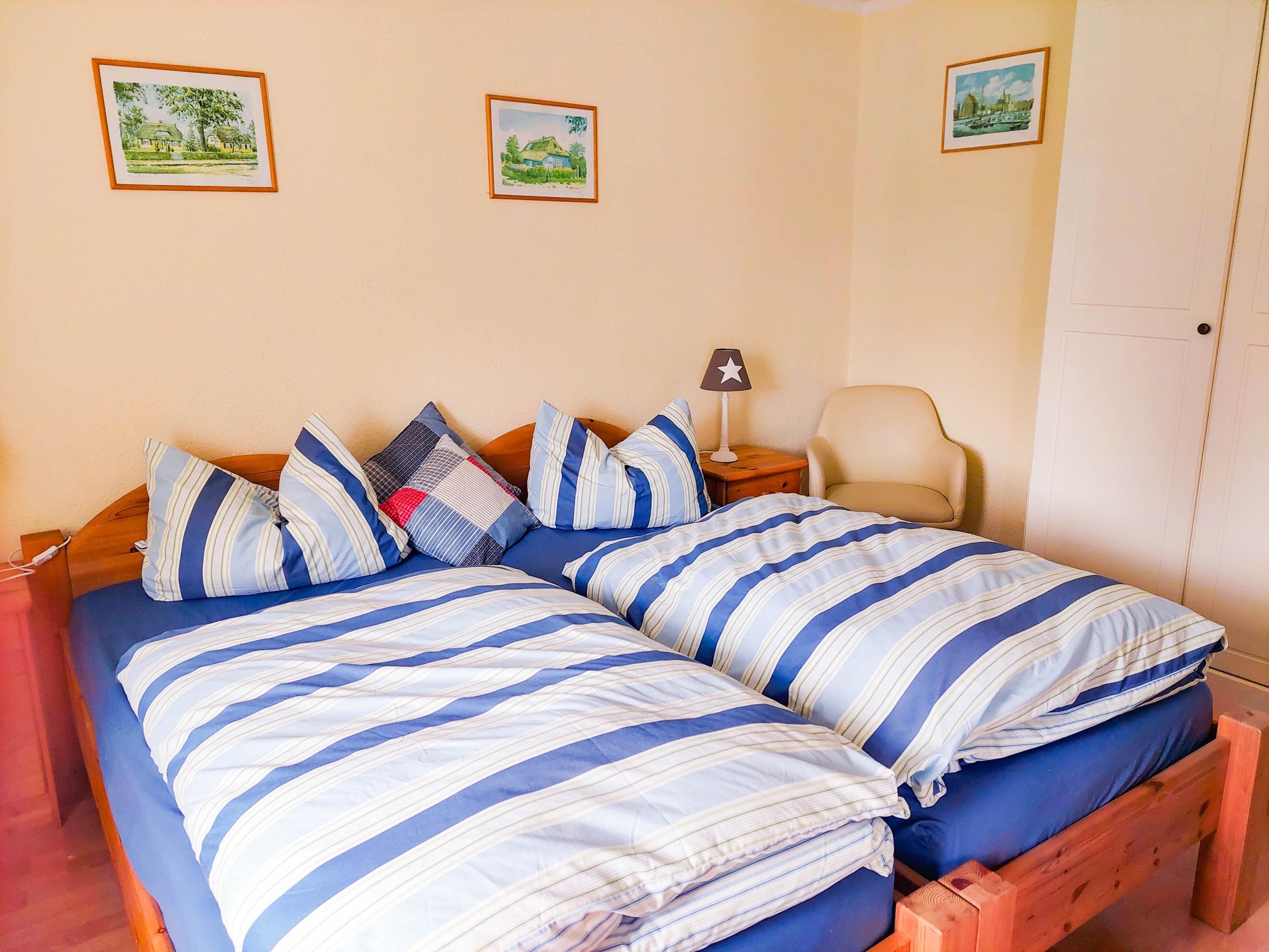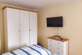 Die 55m² große Ferienwohnung besteht aus 2 Wohn-/Schlafräumen, Küche sowie Bad mit Dusche und WC. Ein Wohn-/Schlafraum ist mit einem Doppelbett (180x200; getrennte Matratzen), Sofa und Flachbild-TV ausgestattet. Das zweite verfügt über 2 Einzelbetten (90x200) und einen Flachbild-TV. Die Küche ist umfangreich ausgerüstet mit Küchenzeile, Esstisch, Spülmaschine, Herd mit Backofen, Kühlschrank mit Gefrierteil, Mikrowelle, Toaster und Kaffeemaschine.