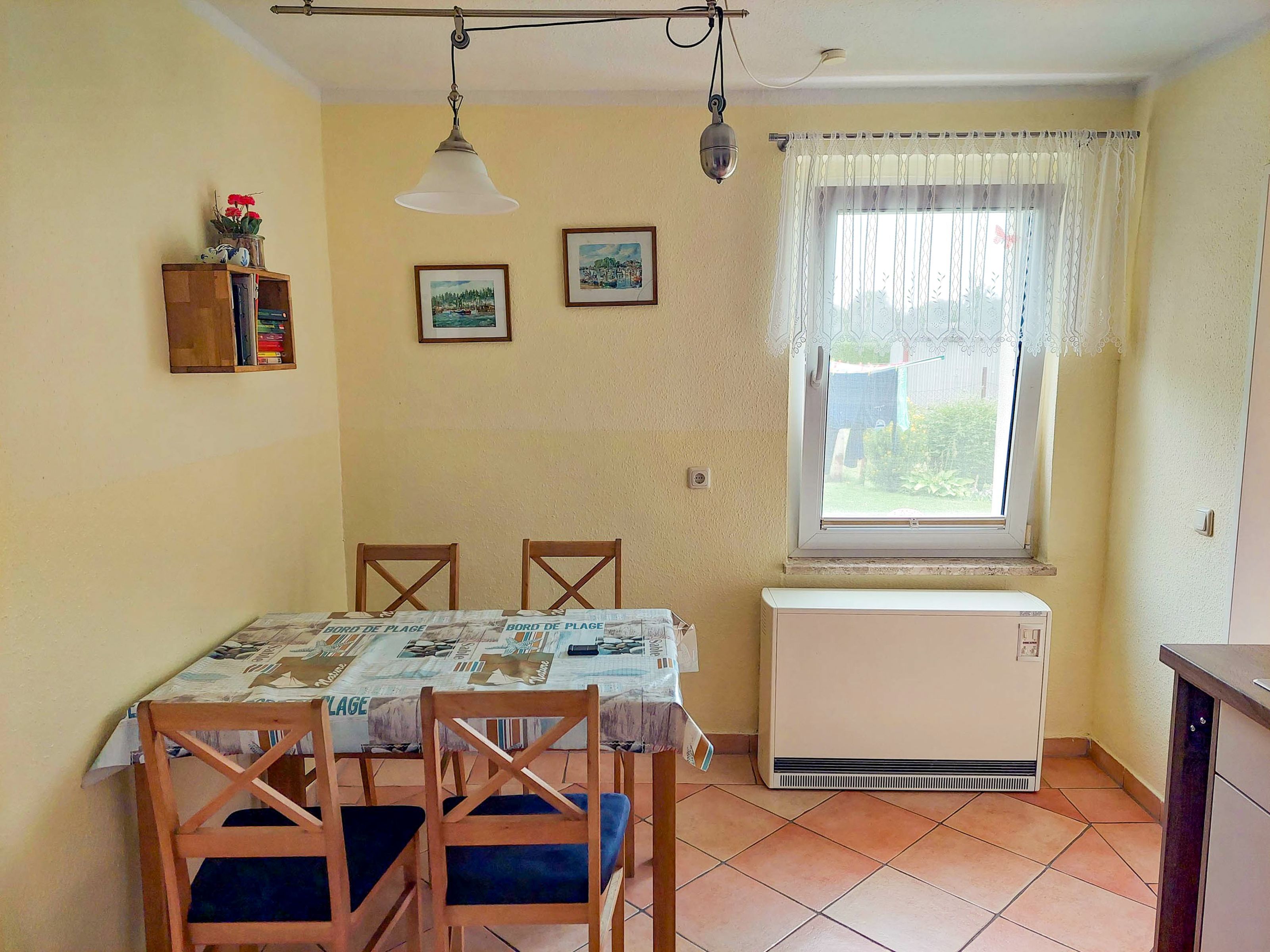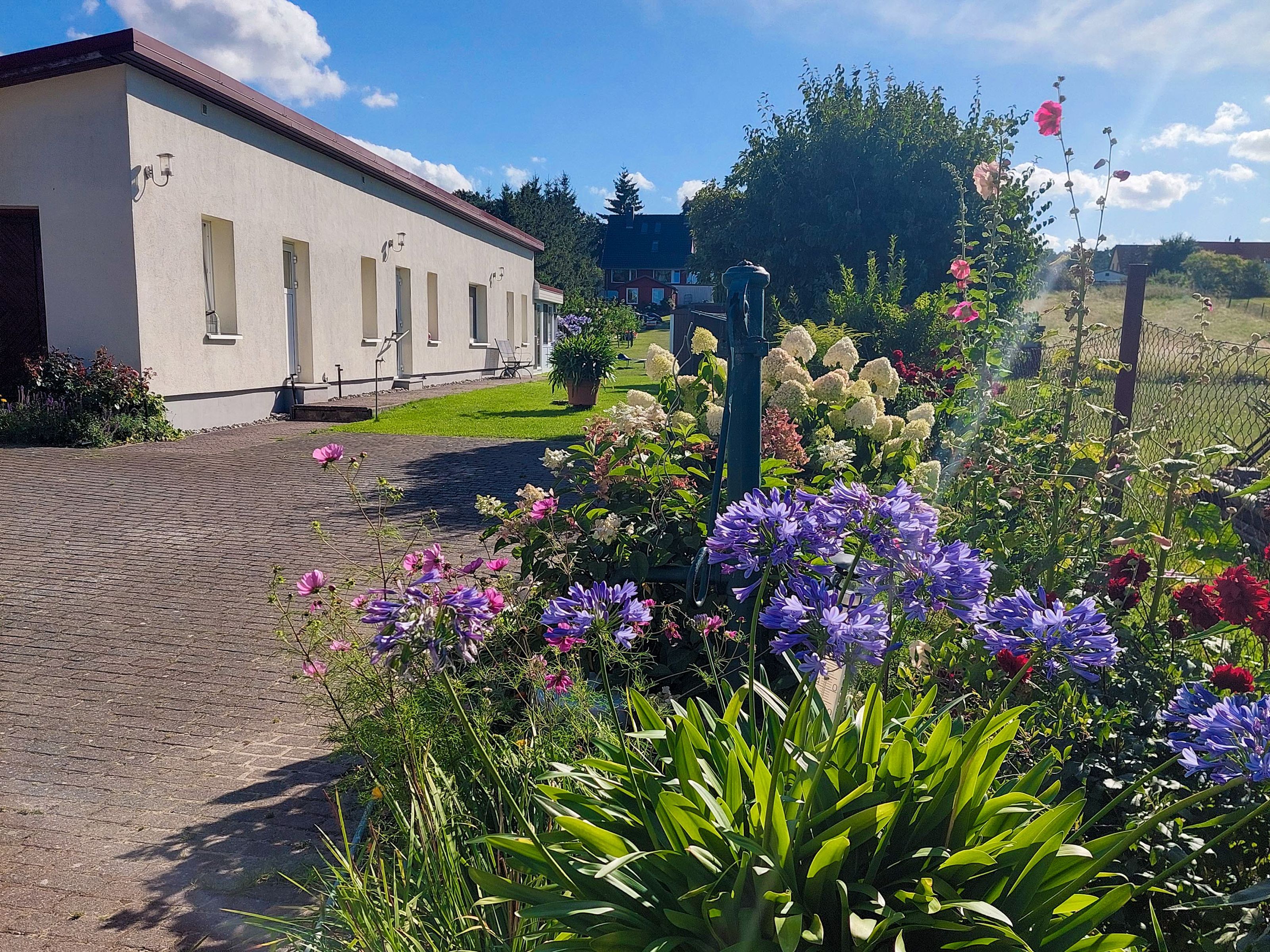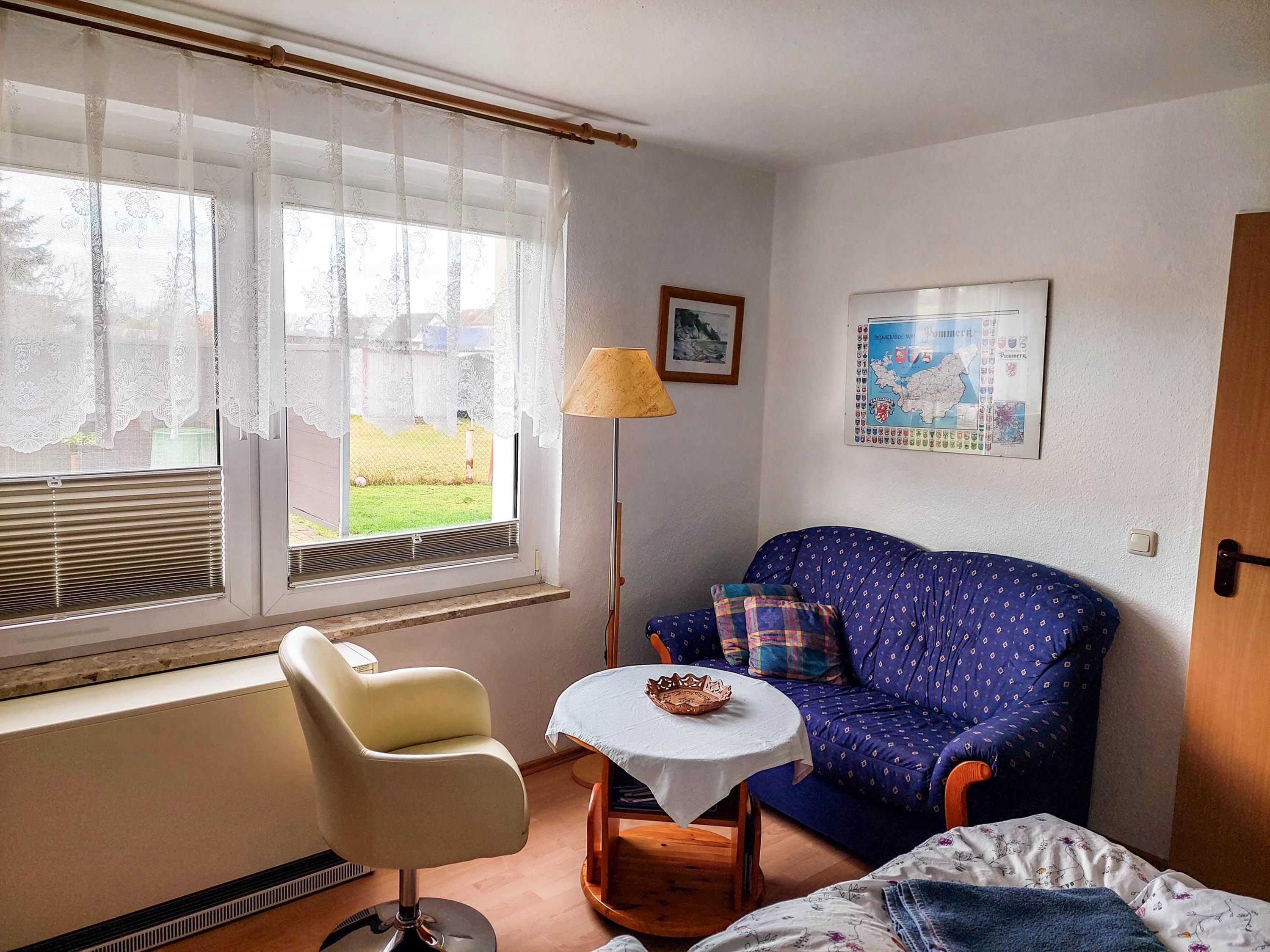 Die 55m² große Ferienwohnung befindet sich im Mittelteil einen Bungalows im alten Fischerdorf Freest, auf dem 2700m² großen Grundstück des Vermieters.