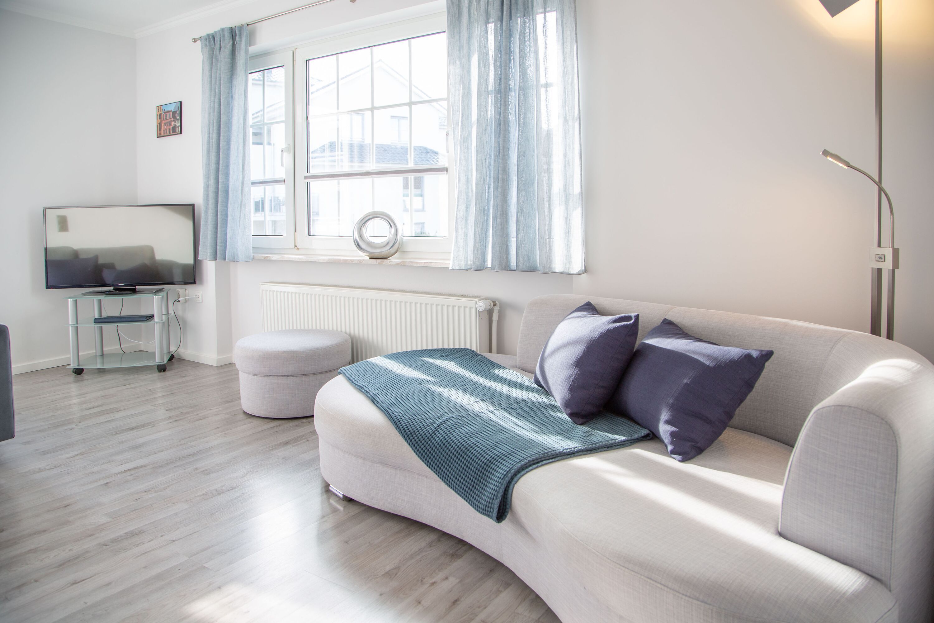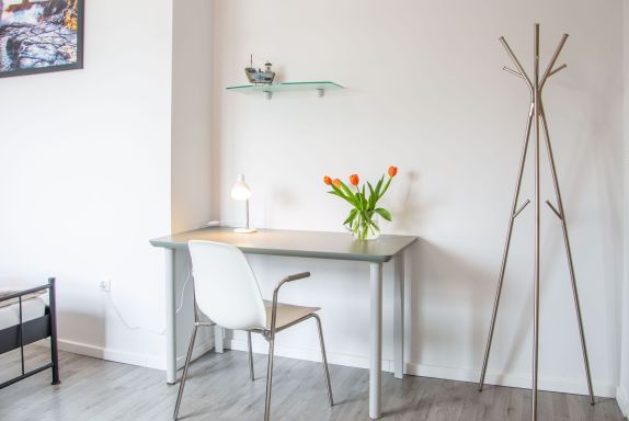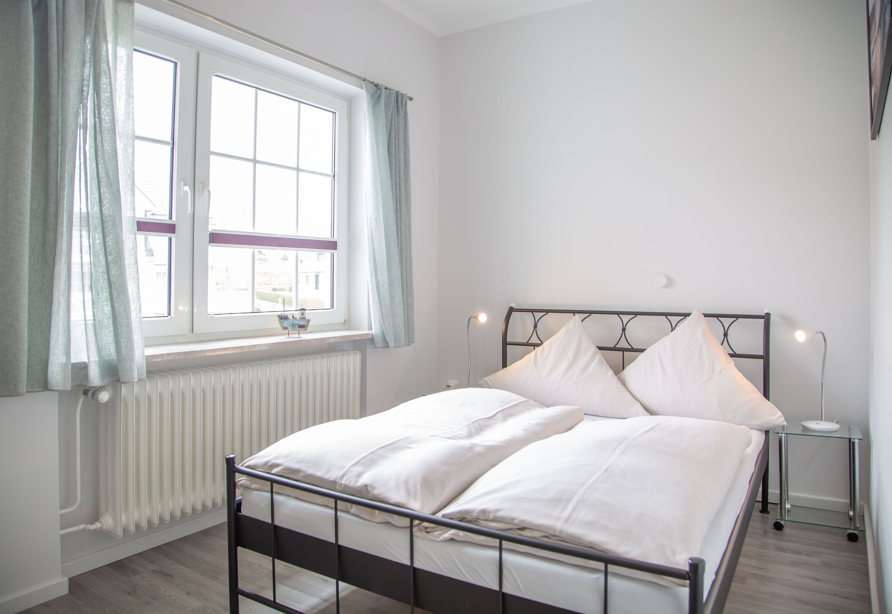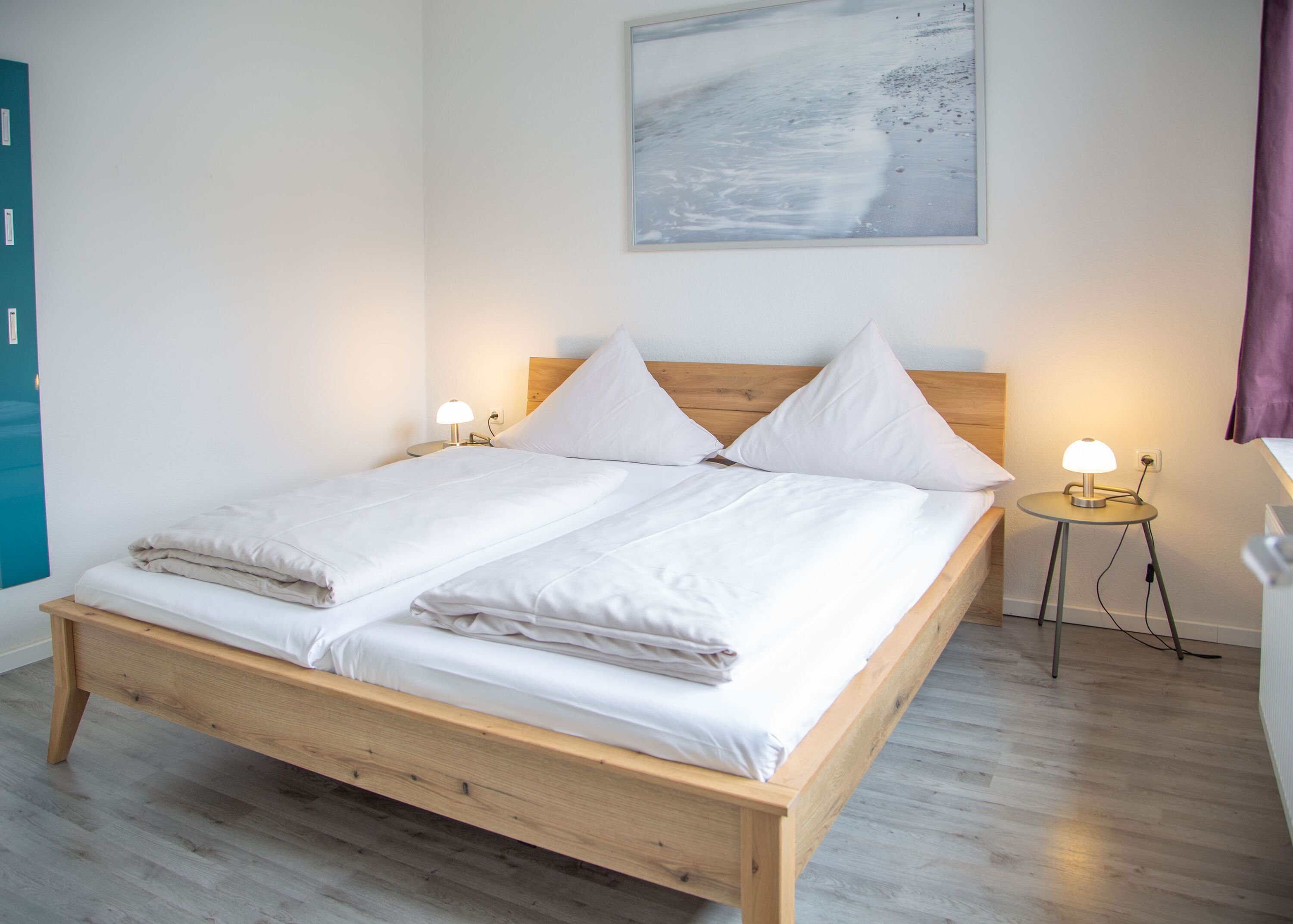Die helle Ferienwohnung Appartement 05 mit Balkon im Haus Gästehaus Daheim bietet auf 54 m² Platz für bis zu 4 Personen (zzgl. max. 1 Babybett). Sie befindet sich in der ersten Etage und verfügt über 2 Schlafzimmer, 2 Badezimmer, 1 Wohnzimmer, 1 Küche und einen großen Balkon. Für die Raucher unter unseren Gästen befindet sich auf dem Balkon ein Aschenbecher. Ein Parkplatz steht direkt am Haus kostenfrei zur Verfügung.