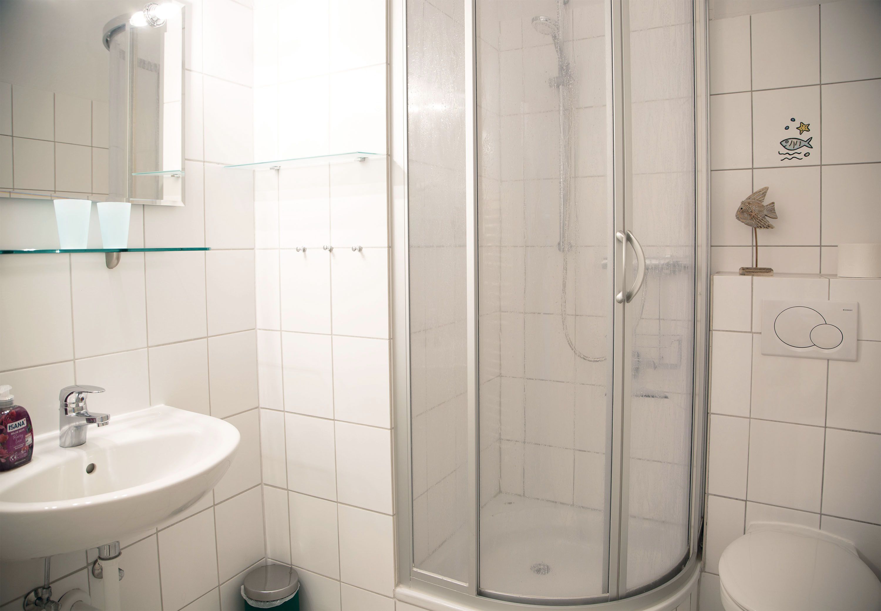 Bäckereien sind in nur wenigen Gehminuten zu erreichen, weitere Einkaufsmöglichkeiten wie ein Supermarkt befinden sich in einer Entfernung von ca. 650 m. Geschäfte, Restaurants und der Strand sind nur ca. 250 m entfernt. Der Kurpark beginnt schon nach ca. 50 m.