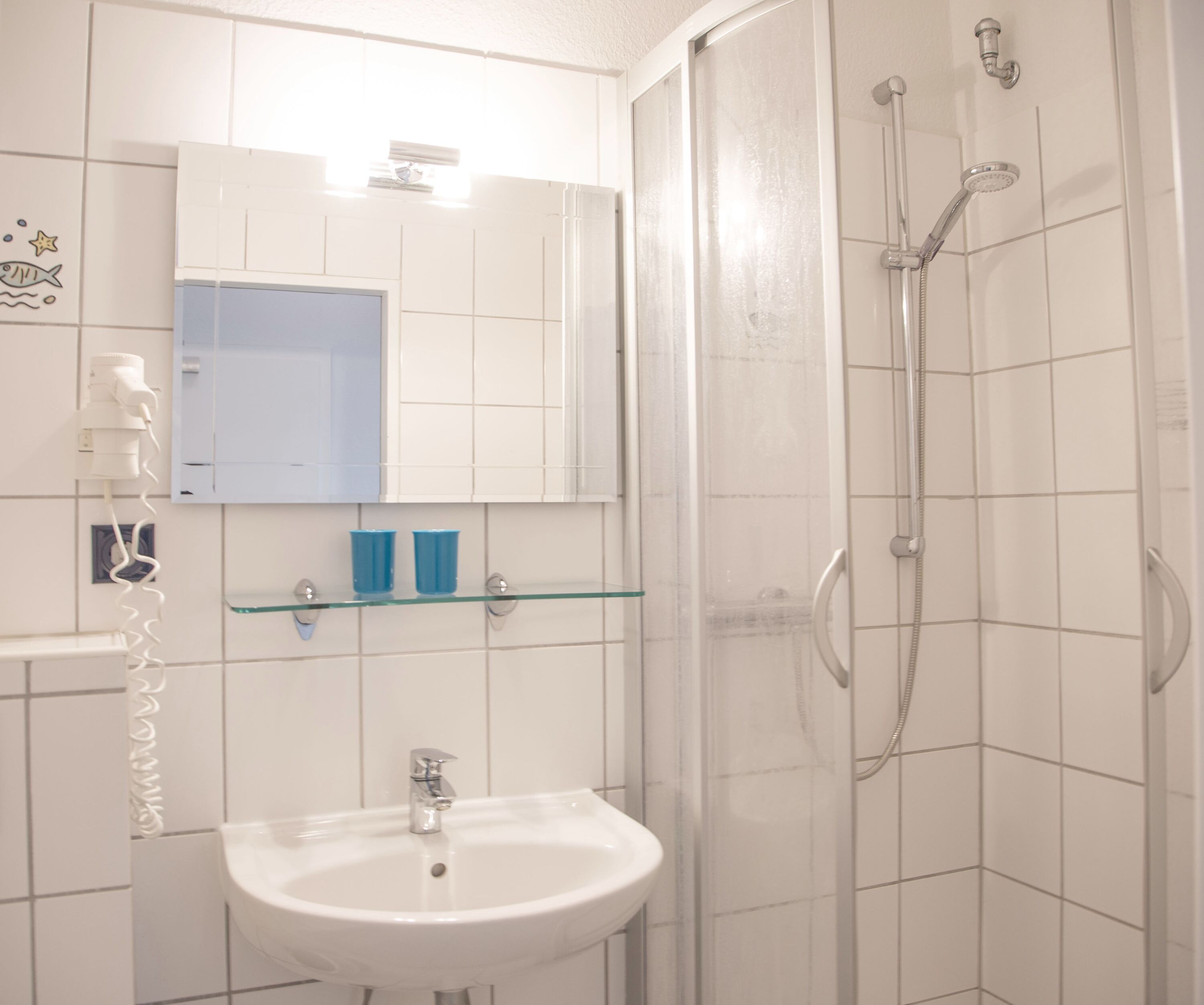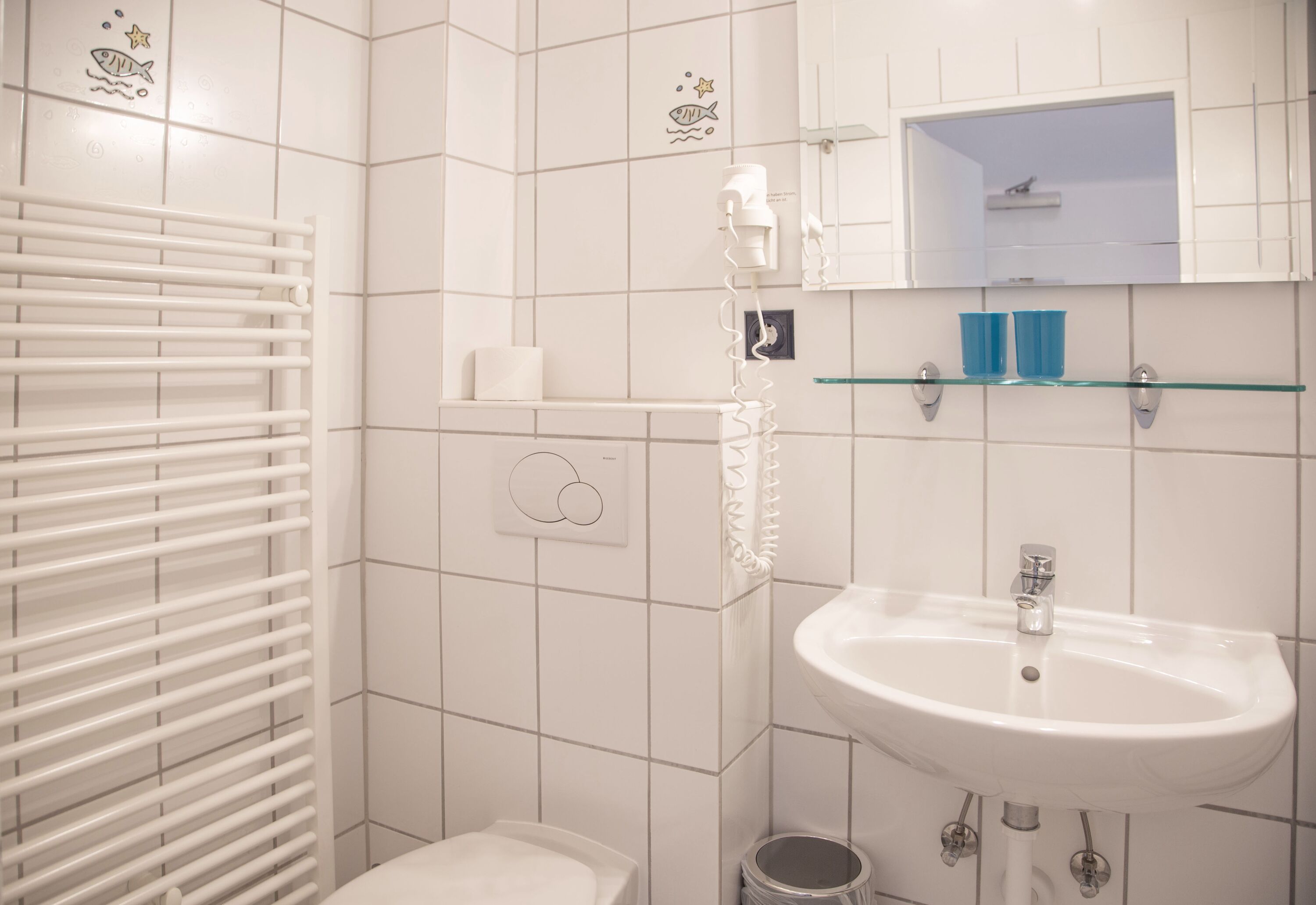 Die Ausstattung umfasst unter anderem einen Flachbildfernseher, sowie kostenfreien Internetzugang, ein Radio und ein Föhn pro Badezimmer.