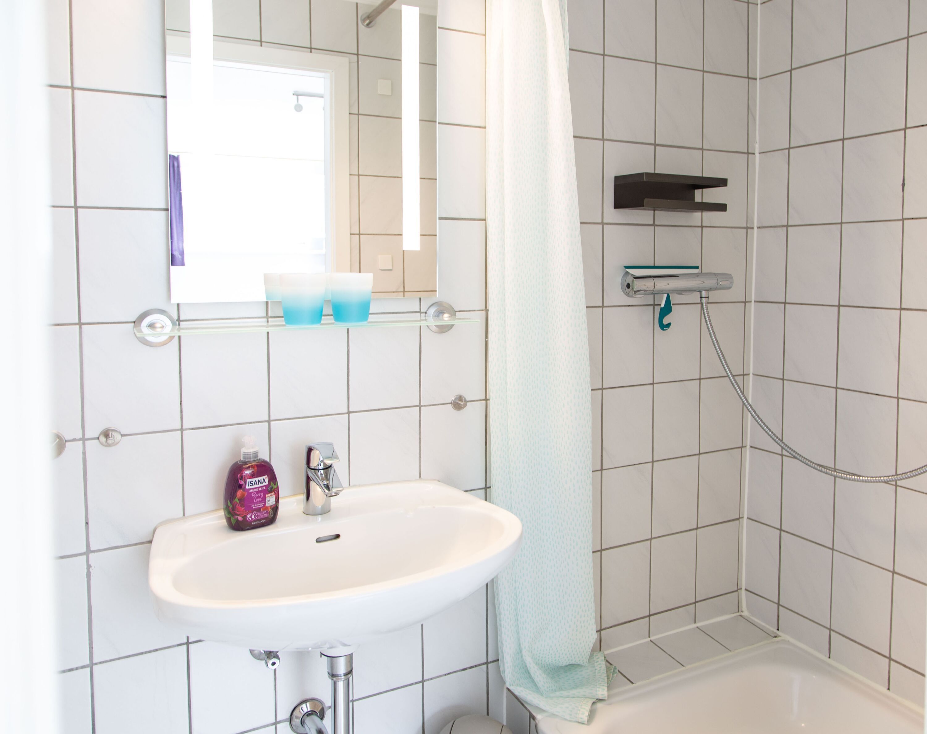 Die Ausstattung umfasst unter anderem einen Flachbildfernseher, sowie kostenfreien Internetzugang, ein Radio und Föhn im Badezimmer.