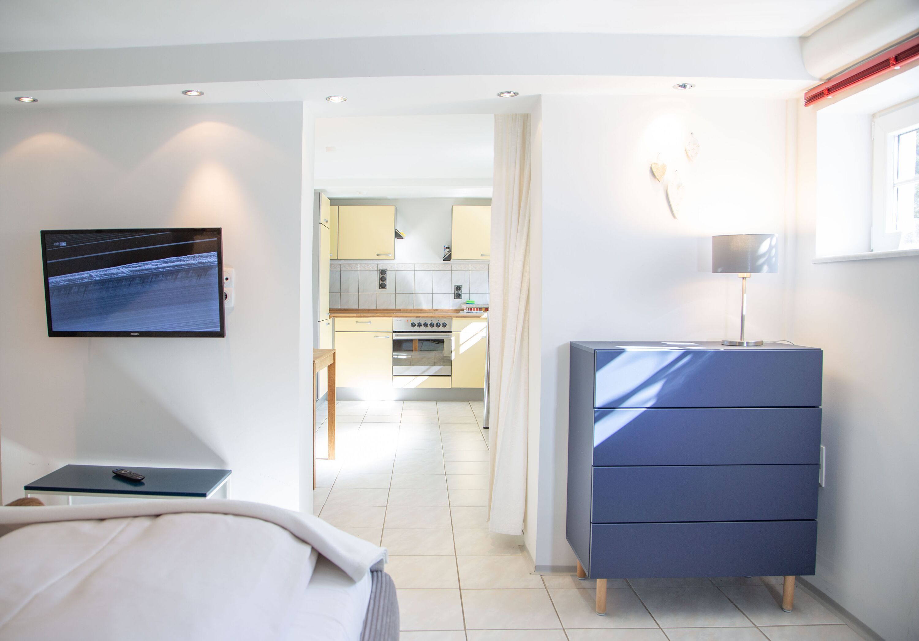 Die gemütliche Ferienwohnung Appartement Souterrain bietet auf 38 m² Platz für maximal 2 Personen (zzgl. max. 1 Babybett) und befindet sich im Souterrain des Gästehauses Daheim in Scharbeutz. Die Wohnung verfügt über einen kombinierten Wohn- Schlafraum, eine Küche mit Sitzgelegenheiten (Filterkaffeemaschine, Backofen, etc. vorhanden) und ein Badezimmer mit Badewanne und WC. Ein Parkplatz steht Ihnen direkt am Haus kostenfrei zur Verfügung.