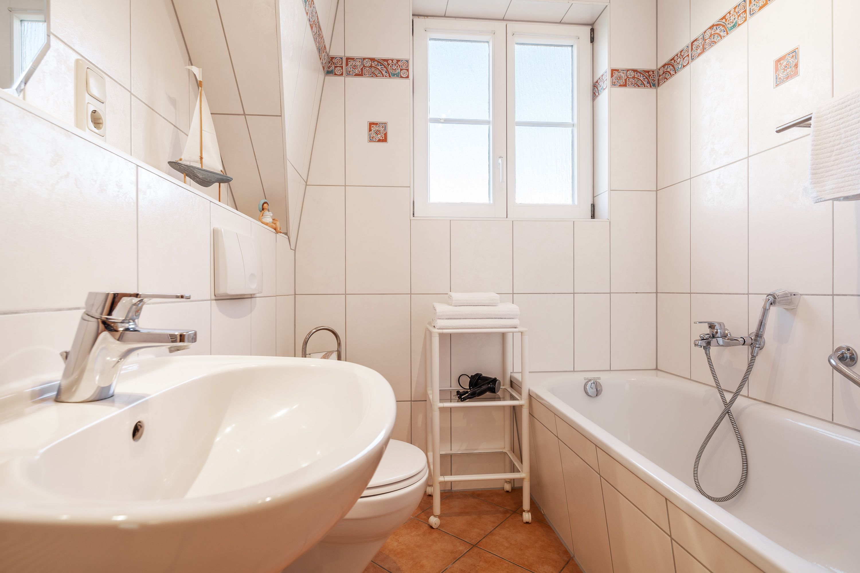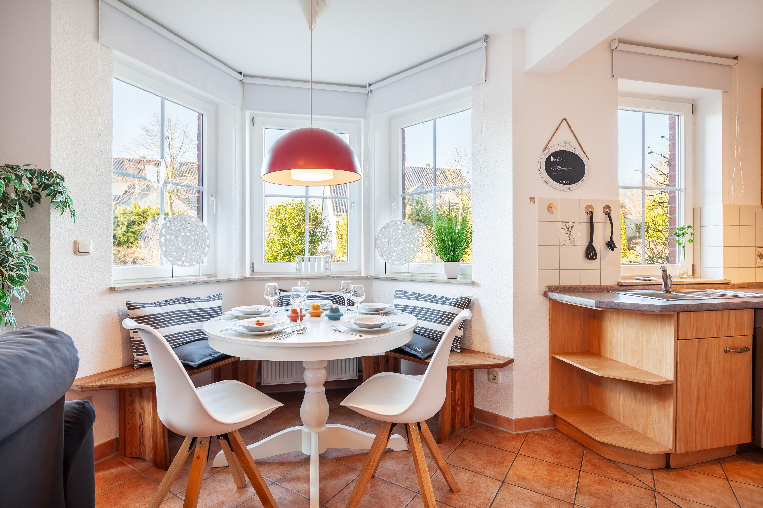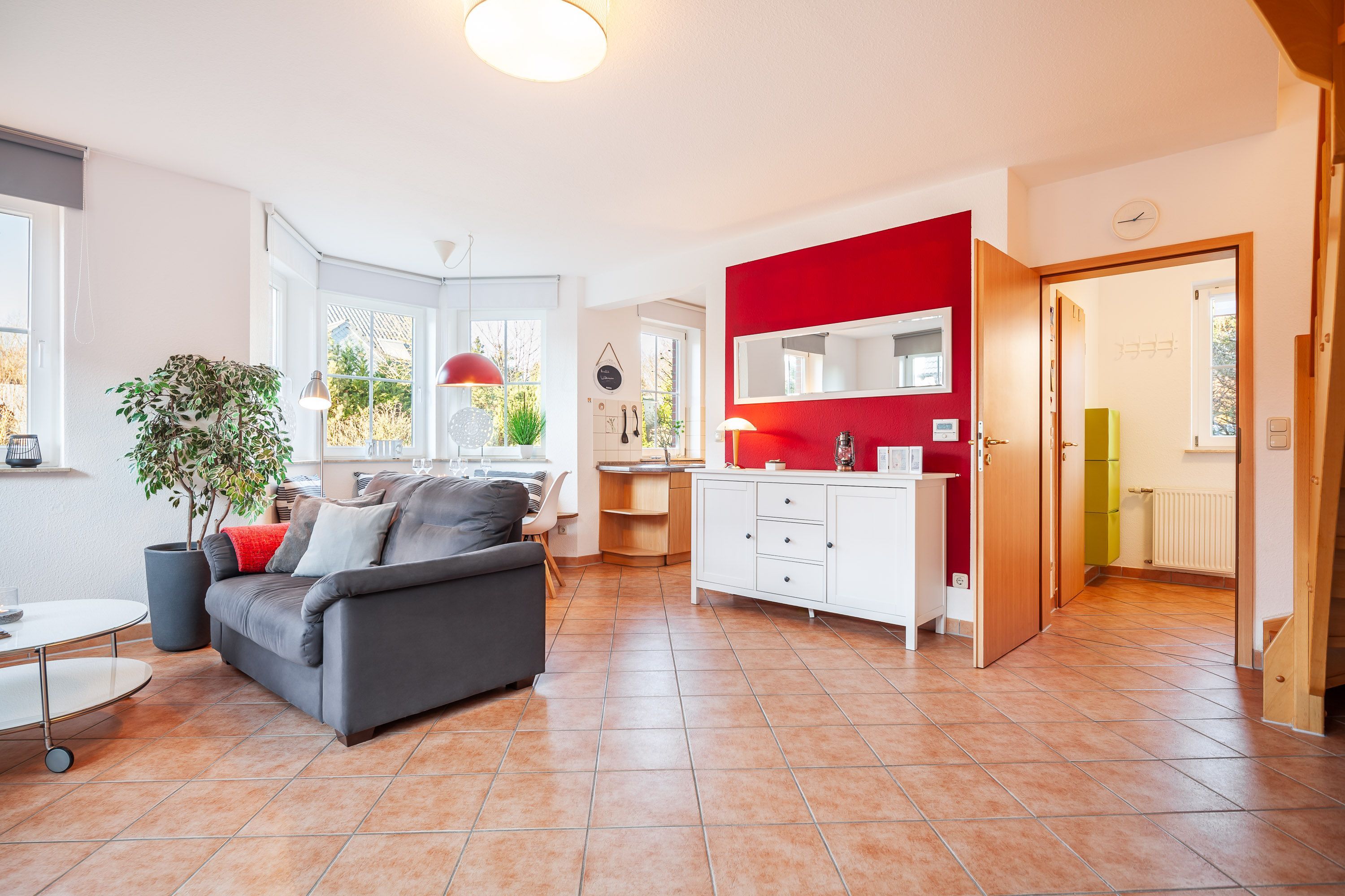 Zur Ausstattung gehören außerdem eine Fahrradabstellmöglichkeit und ein Parkplatz. Haustiere sind in der Unterkunft leider nicht erlaubt. Für eine schnelle Internetverbindung sorgt das WLAN. In der modernen Küche finden Sie unter anderem eine Kaffeemaschine (Filter), einen Geschirrspüler sowie eine Waschmaschine vor.
