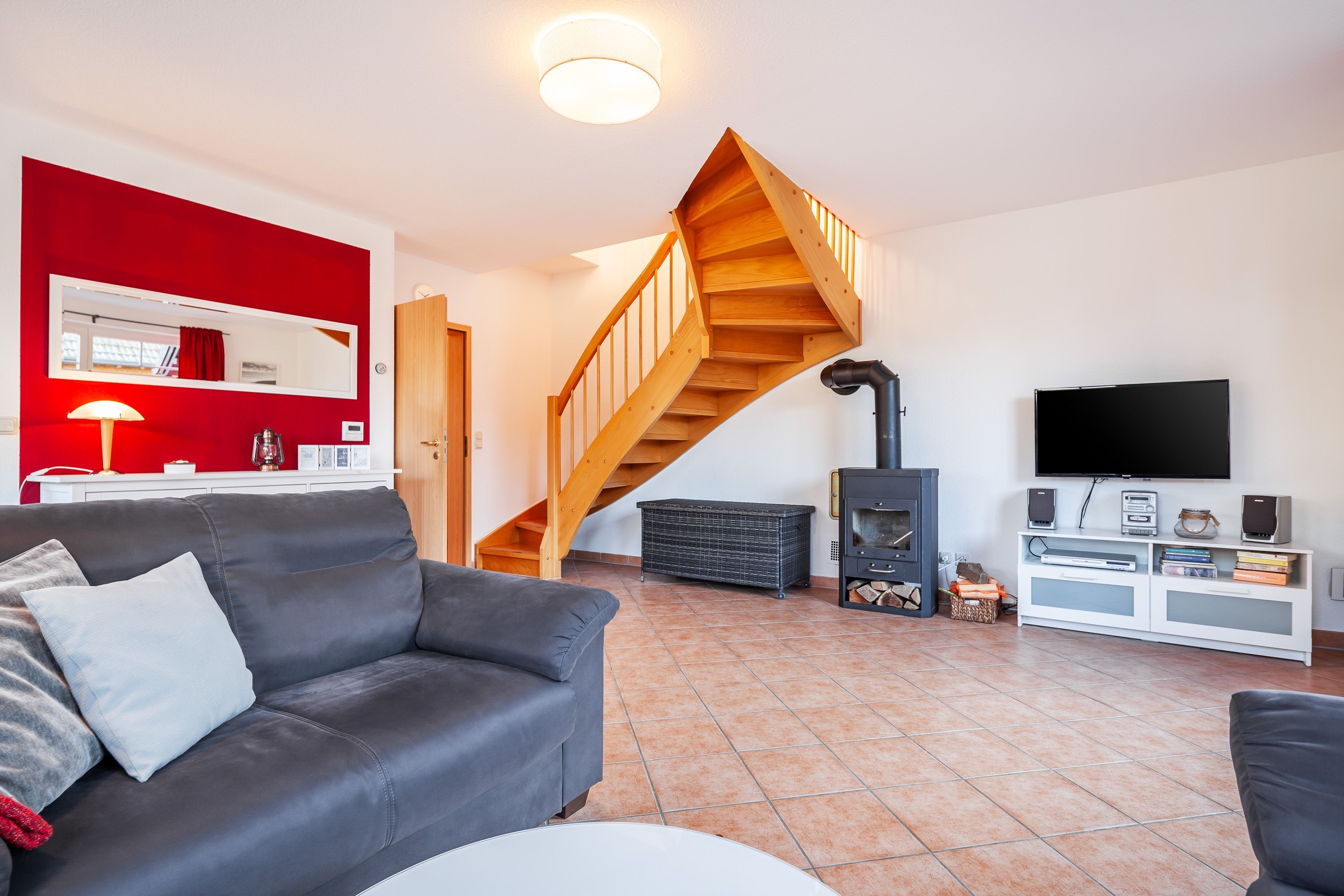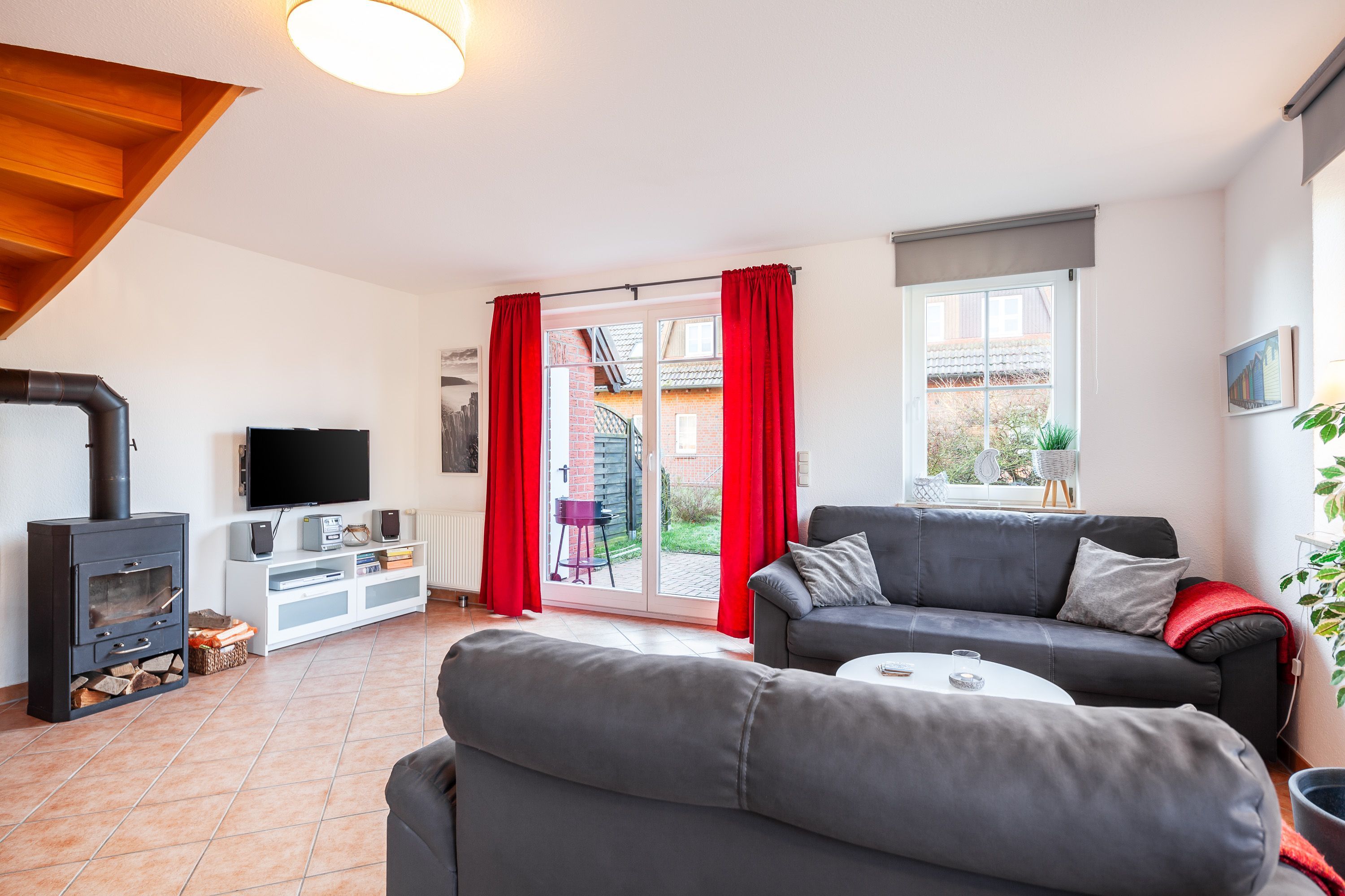 Für die kleinen Gäste steht ein Reise- bzw. Kinderbett bereit. Entspannen Sie auf der Terrasse oder dem Balkon und genießen Sie den Blick in den Garten. An kühleren Abenden sorgt der Kamin für wohlige Wärme. Zur Unterhaltung steht ein Smart-TV sowie eine Musikanlage zur Verfügung. Auch Grillmöglichkeiten sind vorhanden.