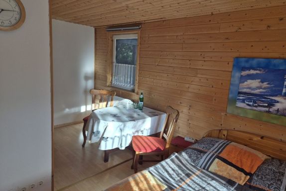 Das Apartment i haven ist einladend schlicht im Kiefernlook gestaltet und bietet bis zu 2 Personen viel Gemütlichkeit und Komfort. Die Fußböden sind im praktischen Designerbelag in Holzoptik gehalten.