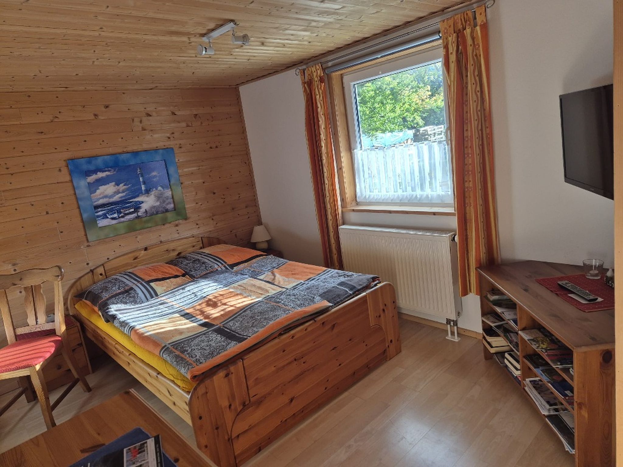 -Schlaf und Wohnbereich mit franz. Doppelbett (1,40 x 2,00) und TV; Bettwäsche inklusive