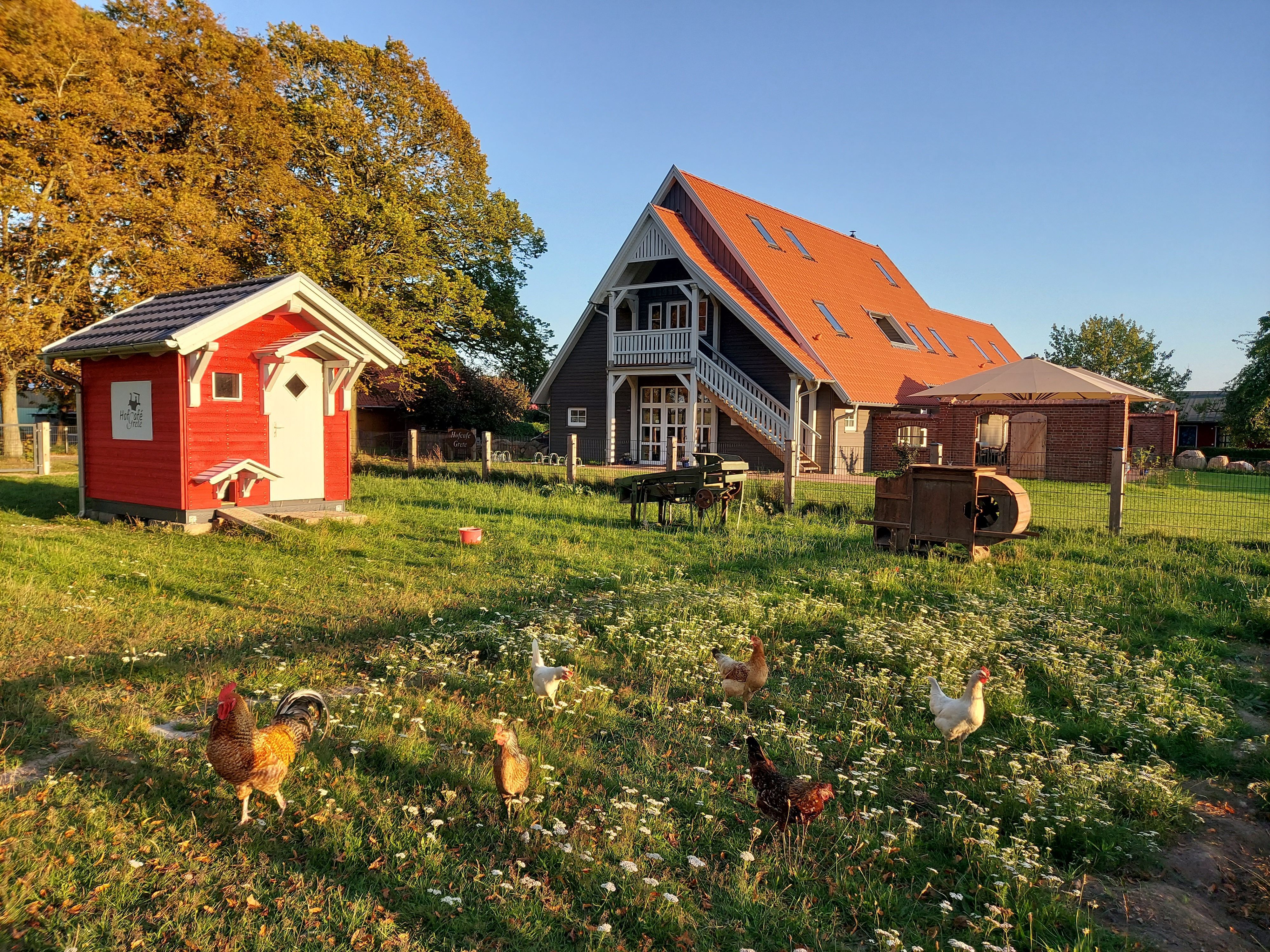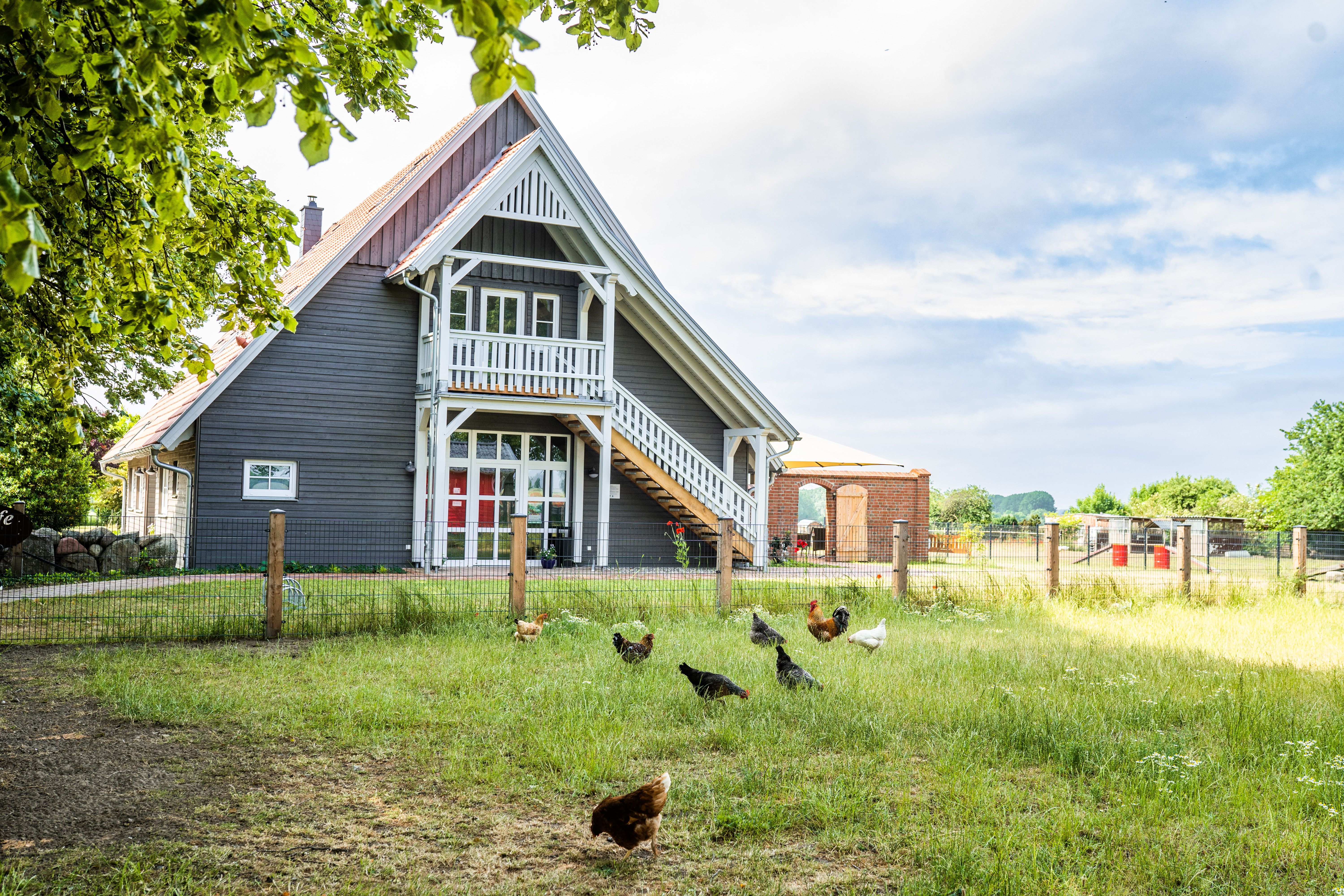 Moderne Ferienwohnungen auf dem Dreiseitenhof mit Hofcafé und Biohof nahe Ostseebad Rerik bieten eine ideale Kombination aus Komfort und Naturnähe. Mit teilweise Weitblick auf das Salzhaff (eine Bucht der Ostsee) können Gäste die Schönheit des Ostseelandes genießen.