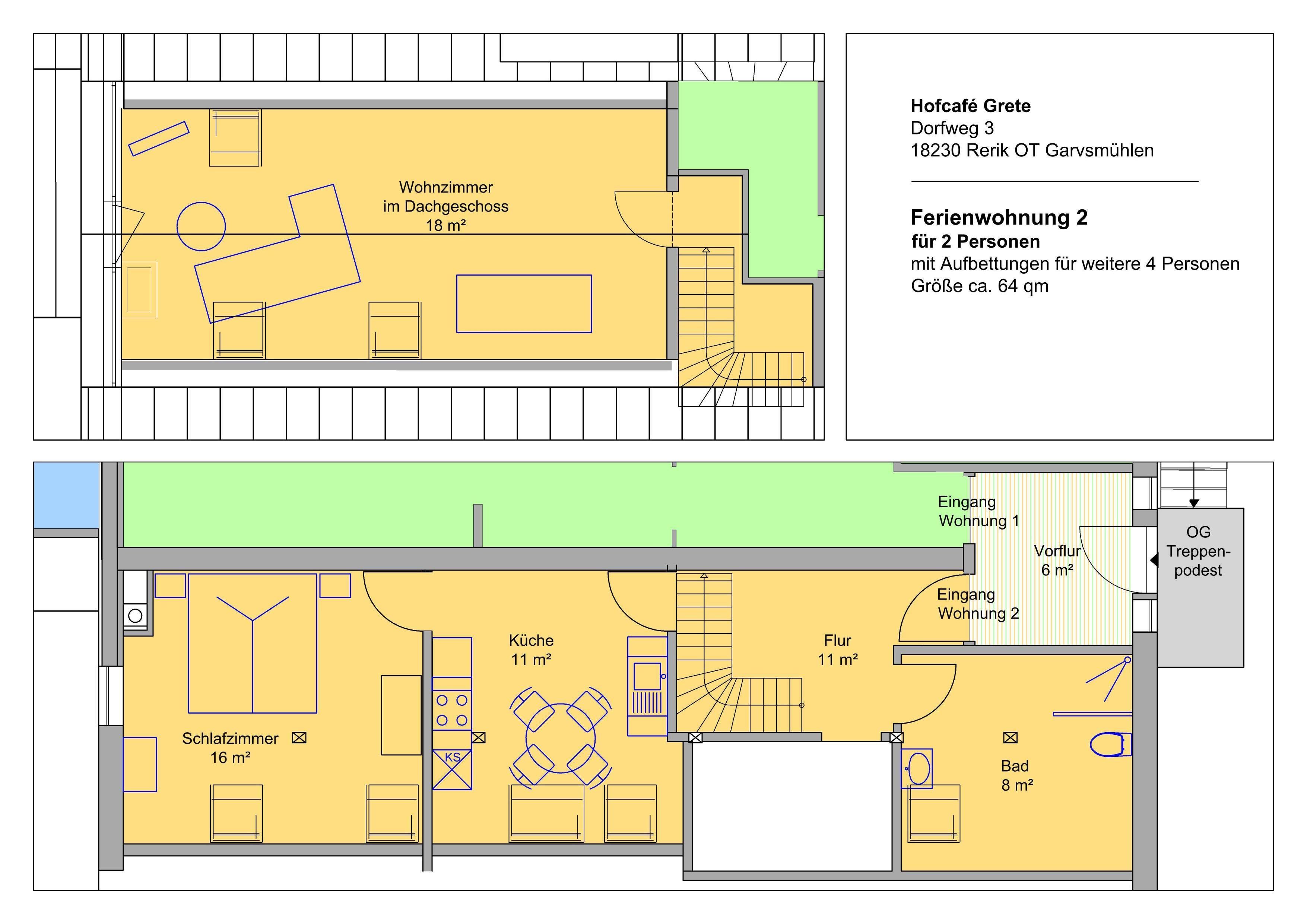 Ferienwohnung auf 124qm bietet auf zwei Ebenen ausreichend Platz für max. 8 Personen.