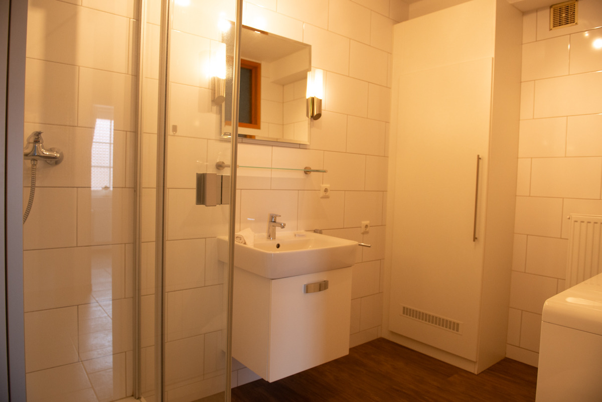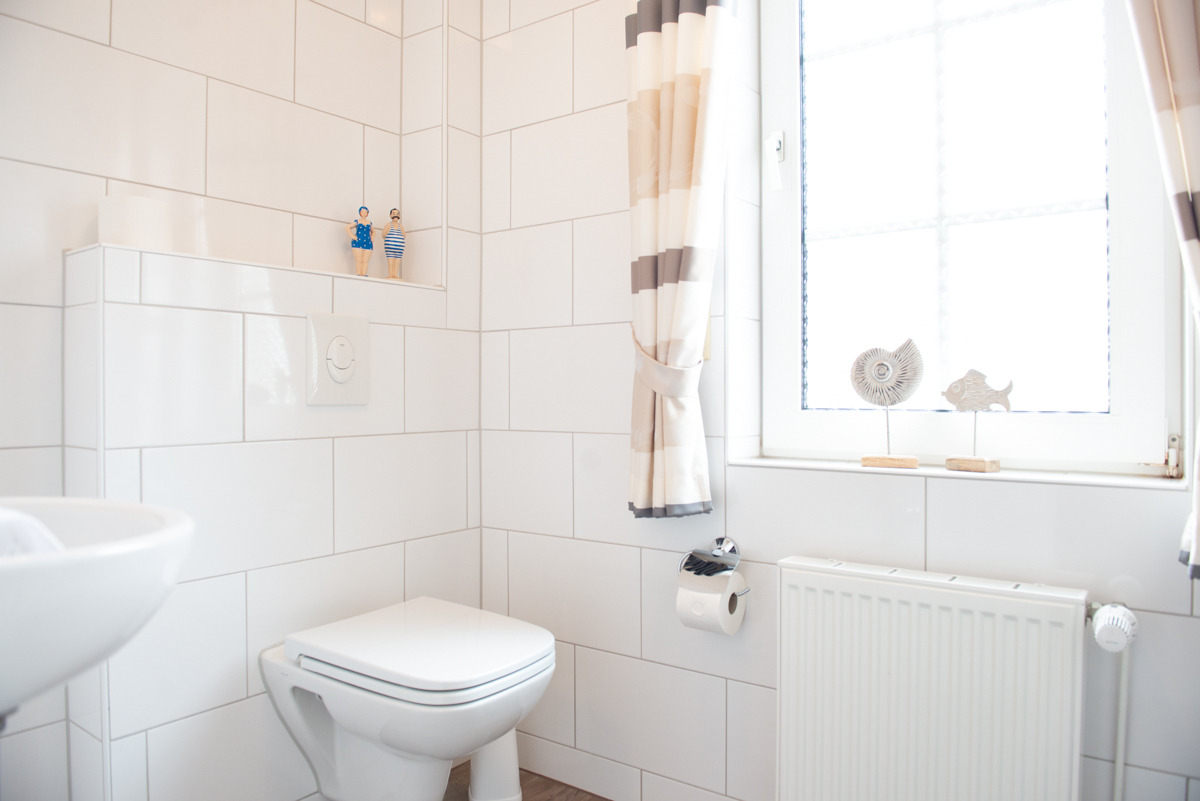 Ebenfalls im 1. OG befindet sich das moderne Bad mit Dusche und ein getrenntes WC