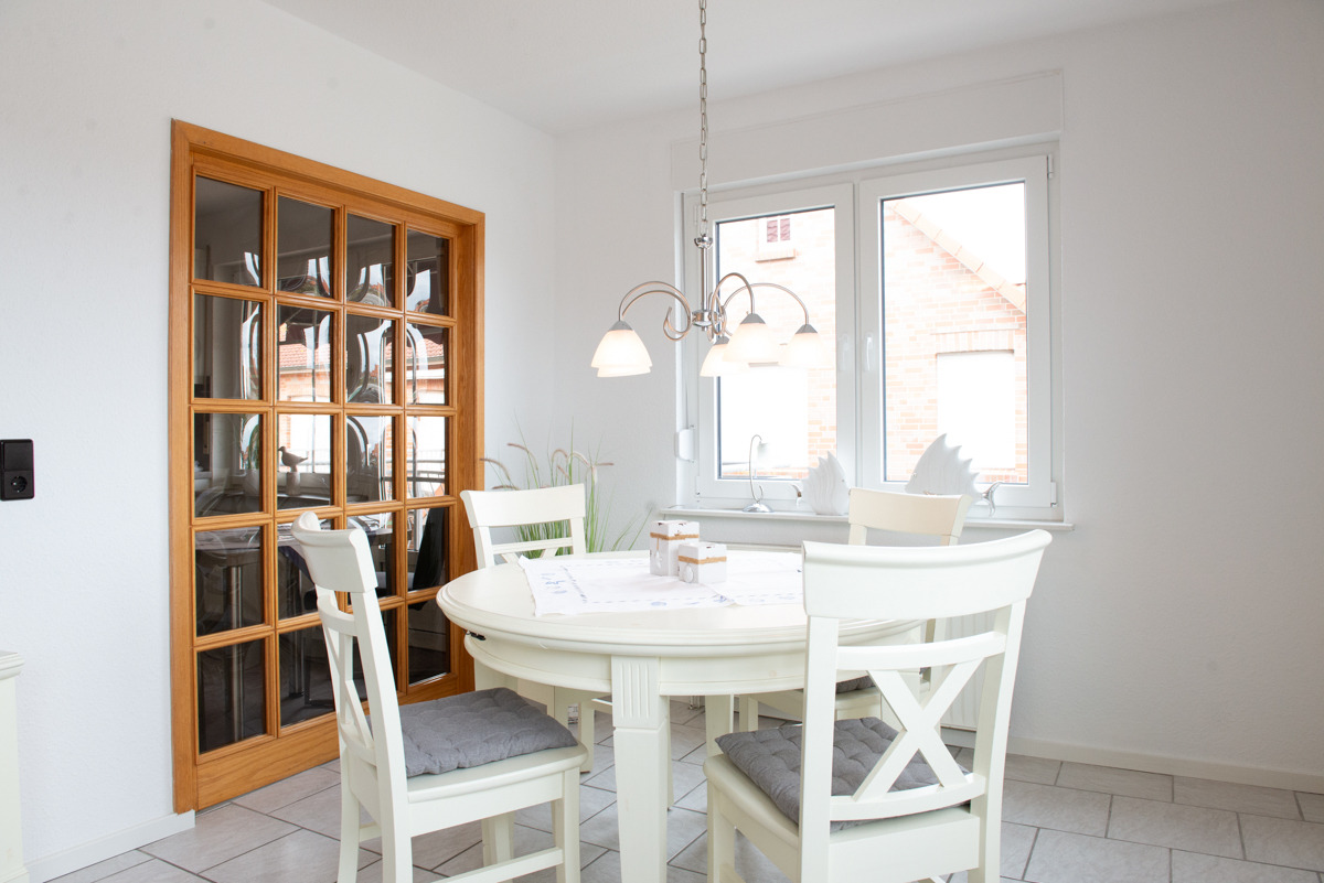 Im 1. OG befindet sich das Wohn/Esszimmer mit einer Essgruppe, einem gemütlichen Sofa und 2 Relaxsessel und Fernseher.