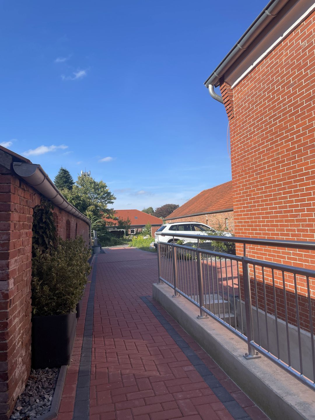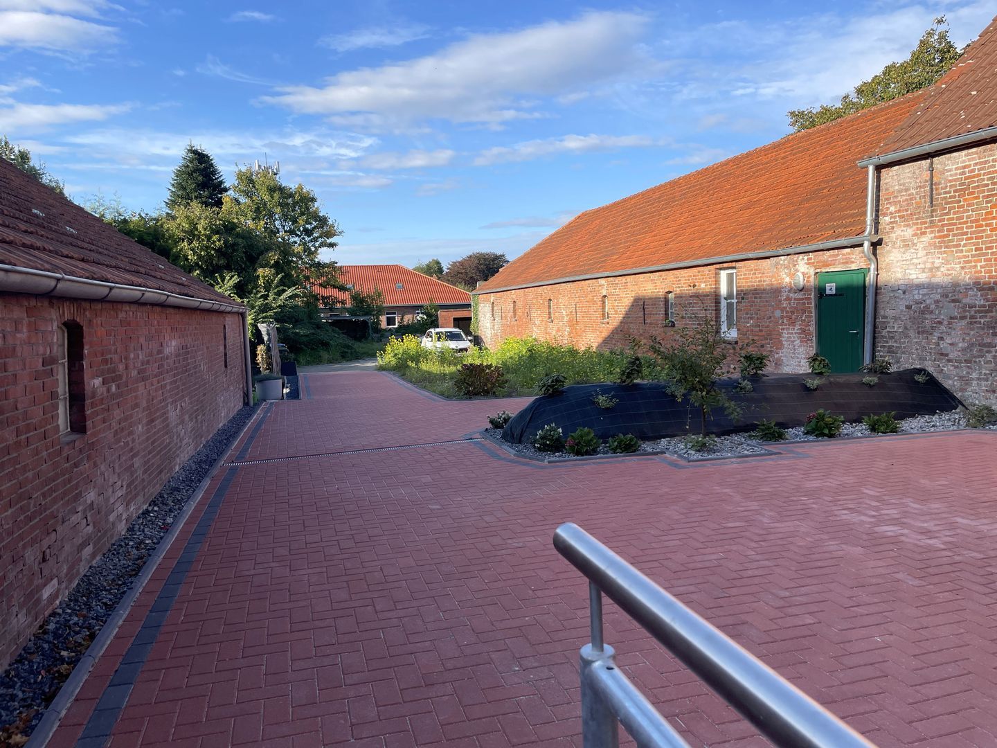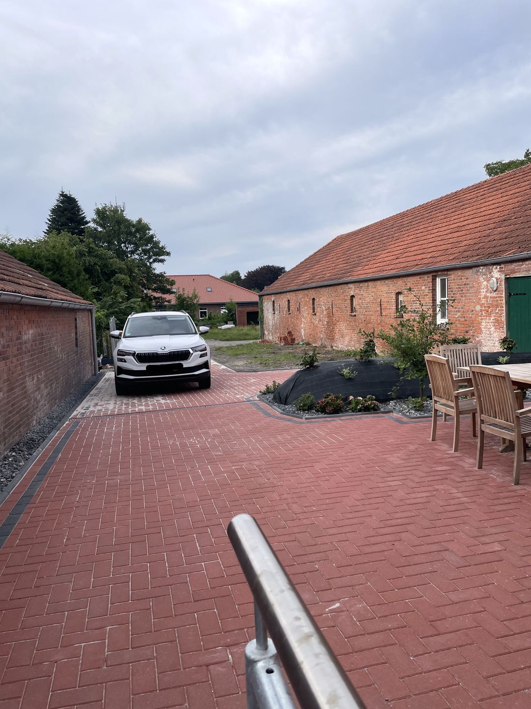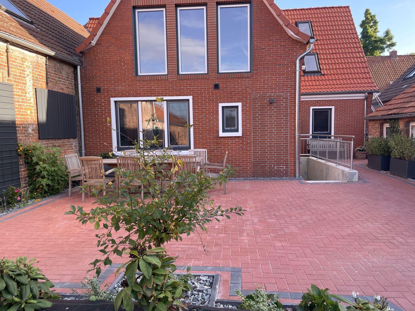 Der Außenbereich bietet eine großzügige Terrasse mit hochwertiger Möblierung. 3 gepflasterte PKW-Stellplätze sind auf dem Grundstück vorhanden. In der abschließbaren Garage sind Abstellmöglichkeiten für mitgebrachte Fahrräder vorhanden. Auch Bollerwagen, Kinderhochstuhl und Babybett stehen kostenfrei zur Verfügung.