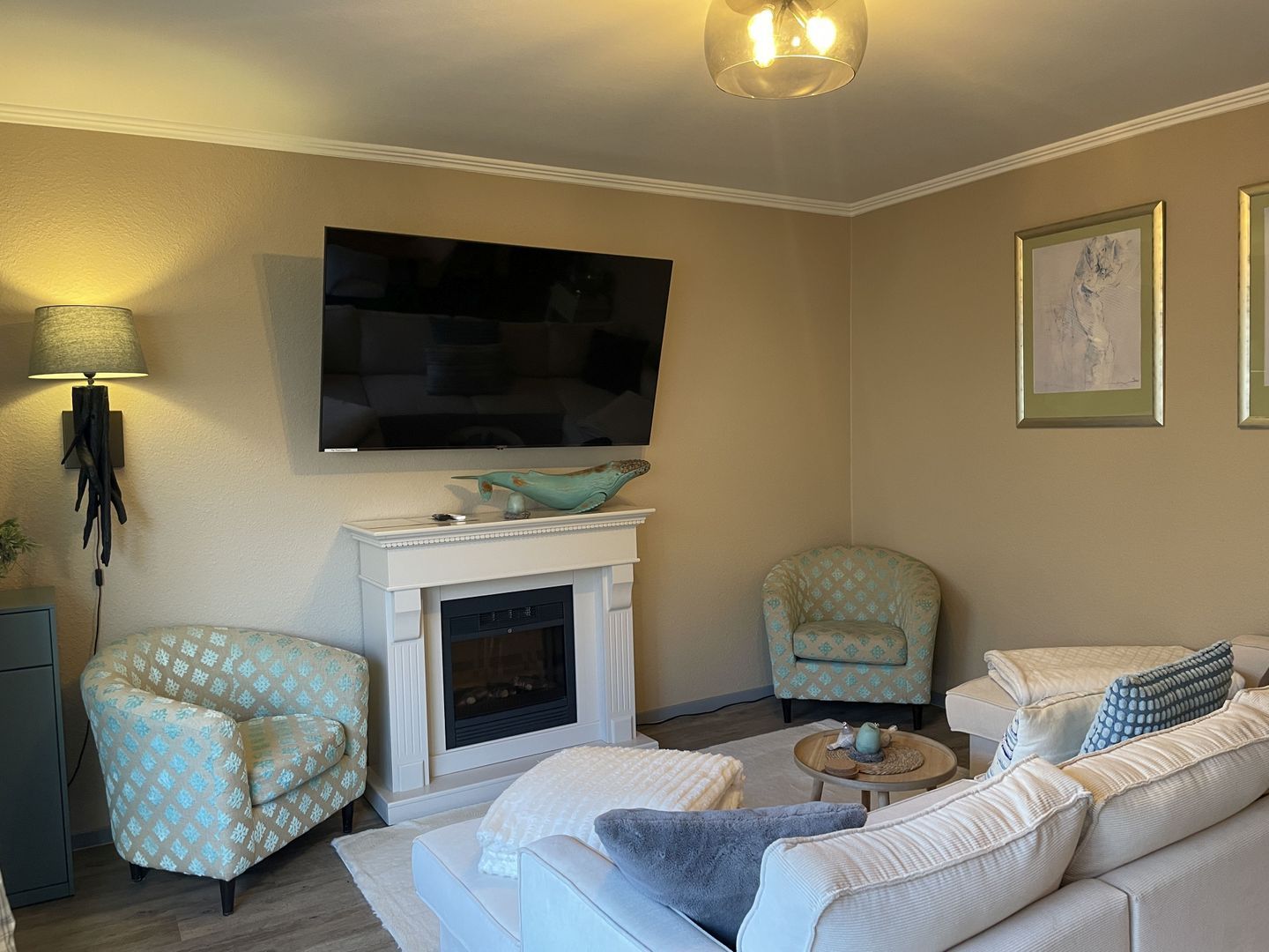 Das Wohnzimmer ist ein wahres Highlight. Entspannen Sie auf der bequemen Sofaecke (als Schlafsofa für eine 5. und 6. Person verfügbar, nur auf Anfrage), schauen Sie sich einen Film auf dem TV an oder genießen Sie einfach die Ruhe.