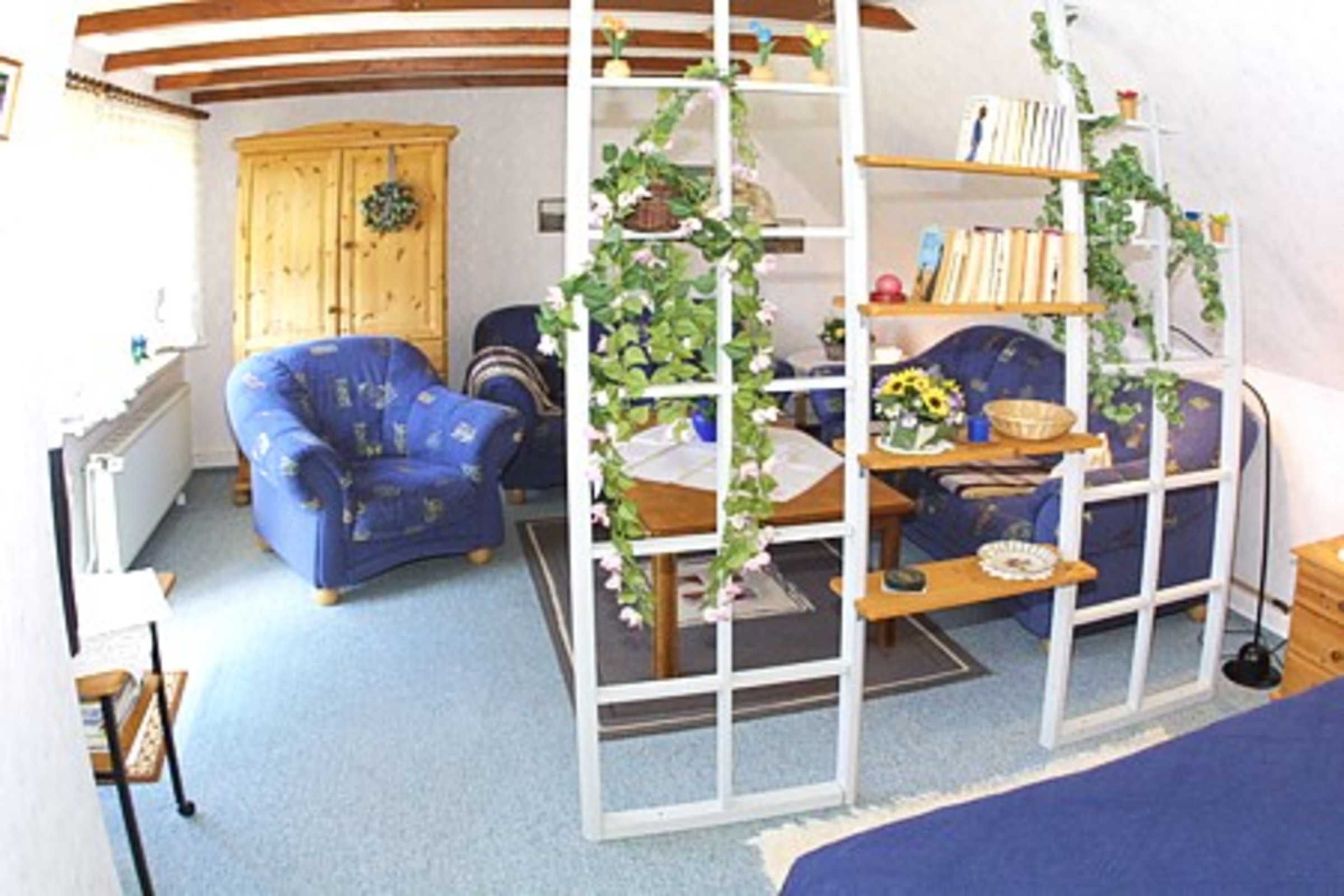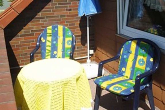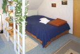 Größe ca. 60 Quadratmeter, Wohnzimmer, Küche, Schlafzimmer, Badezimmer mit, Dusche, separates WC, Obergeschoss, Terrasse im Garten, Balkon, optimal für 1 bis 2 Personen.