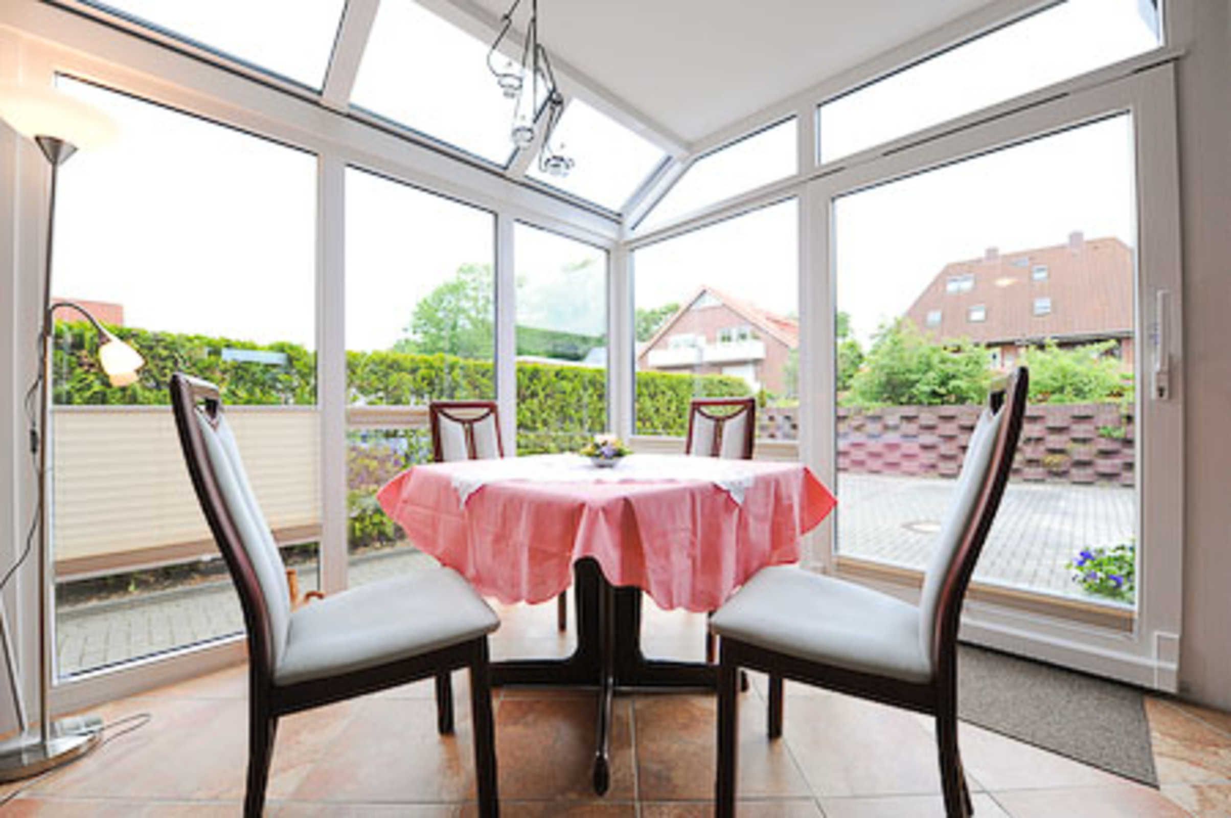 Größe ca. 50 Quadratmeter, Wohnzimmer, Küche, Schlafzimmer, Badezimmer mit, Dusche, Waschtisch und WC, Süd-Terrasse, Abstellraum im Keller, Wintergarten, optimal für 2 Personen.