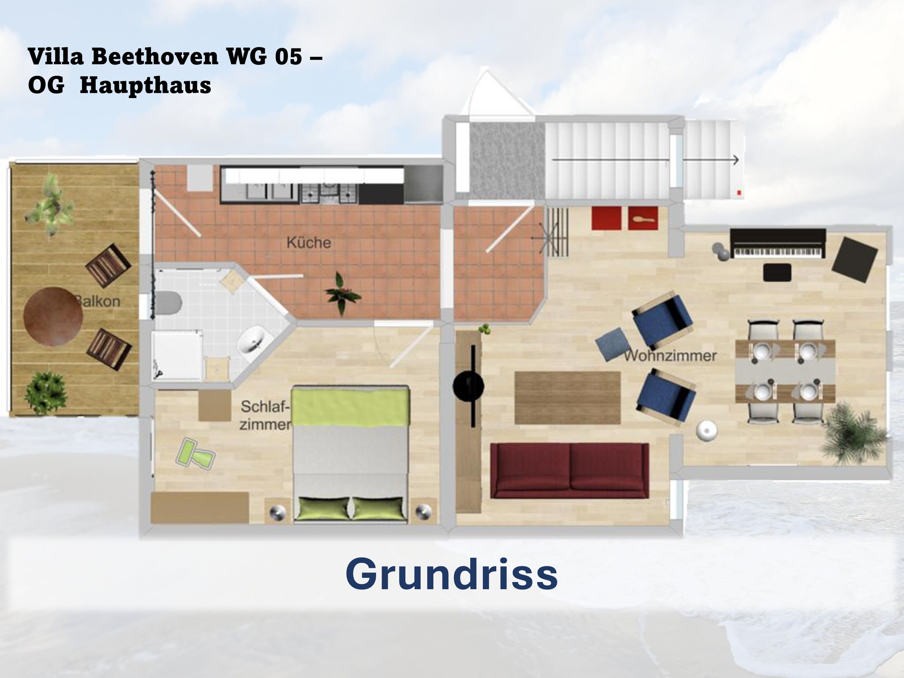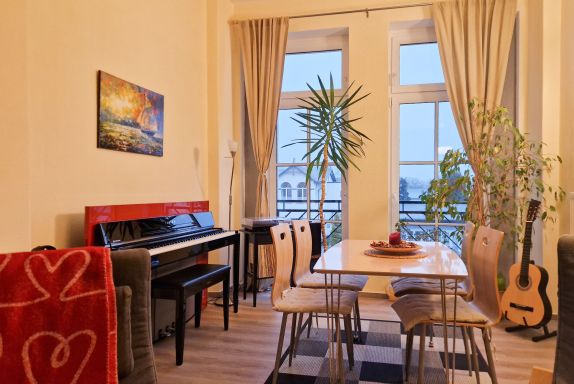 Wir freuen uns, Sie in unserer komfortablen und familienfreundlichen Ferienwohnung 05 in der Villa Beethoven im wunderschönen Zinnowitz begrüßen zu dürfen! Die Wohnung bietet ausreichend Platz für bis zu vier Erwachsene und ist besonders für musikbegeisterte Gäste ein Highlight, da sie über ein eigenes Klavier verfügt.