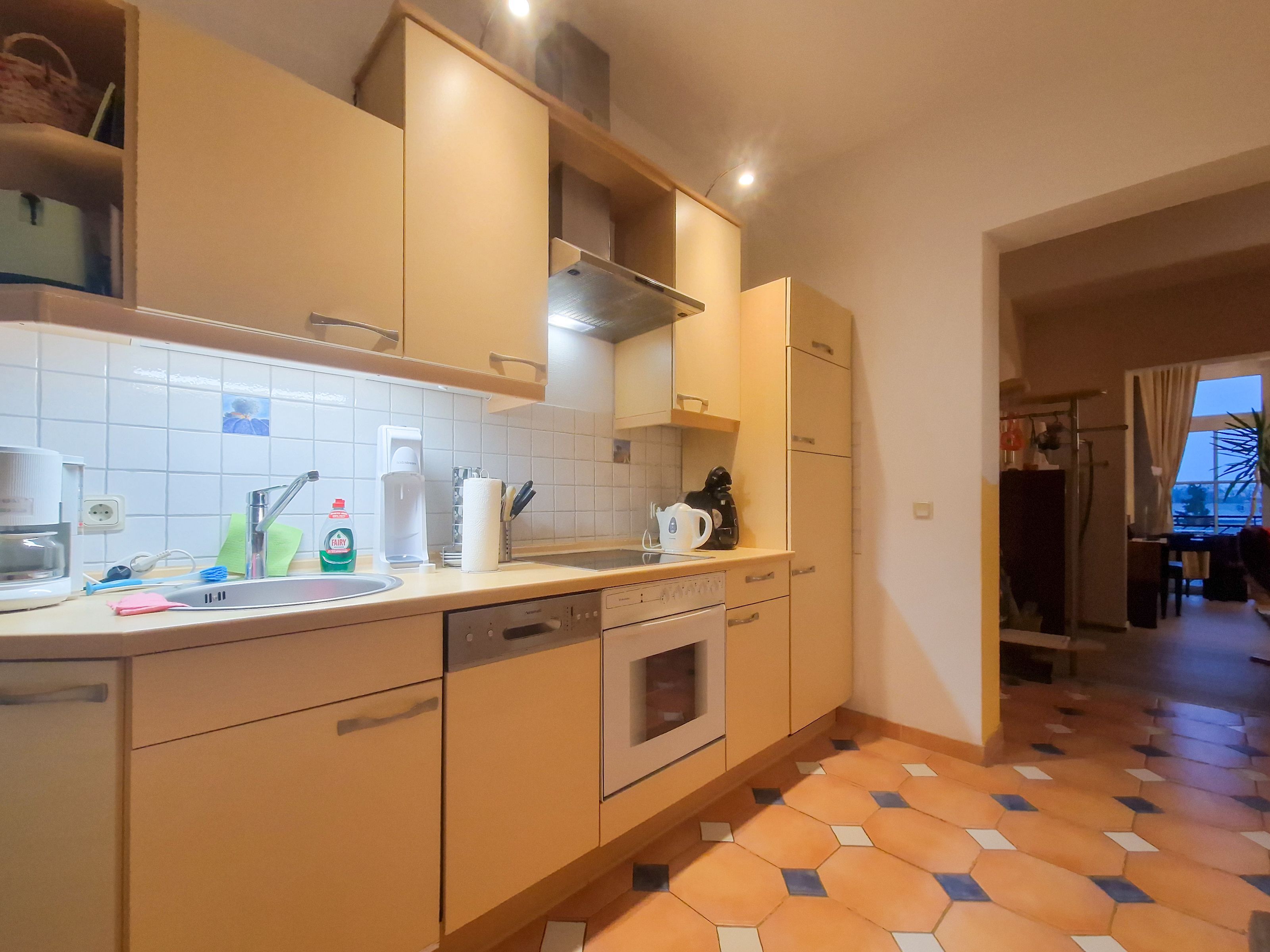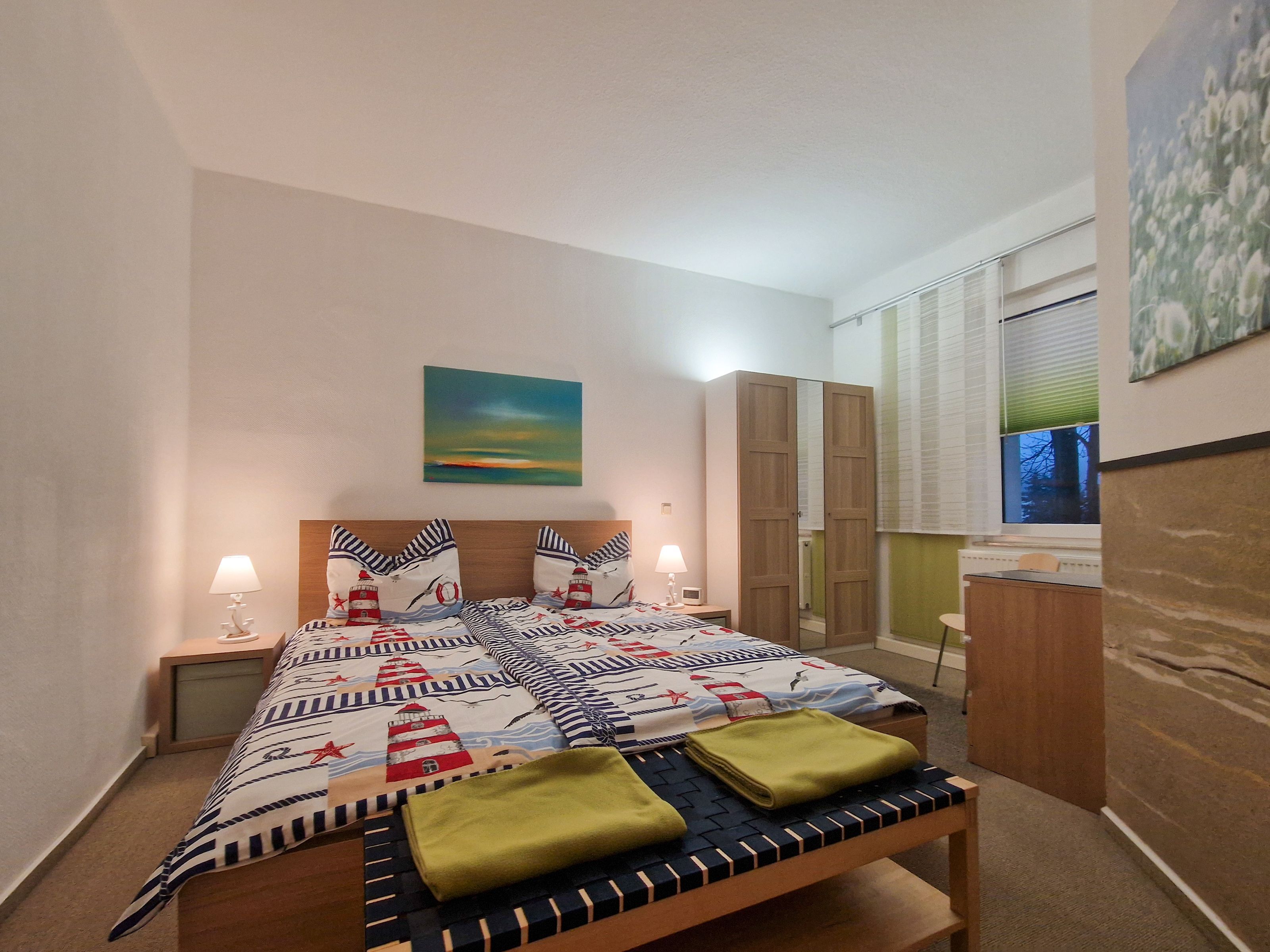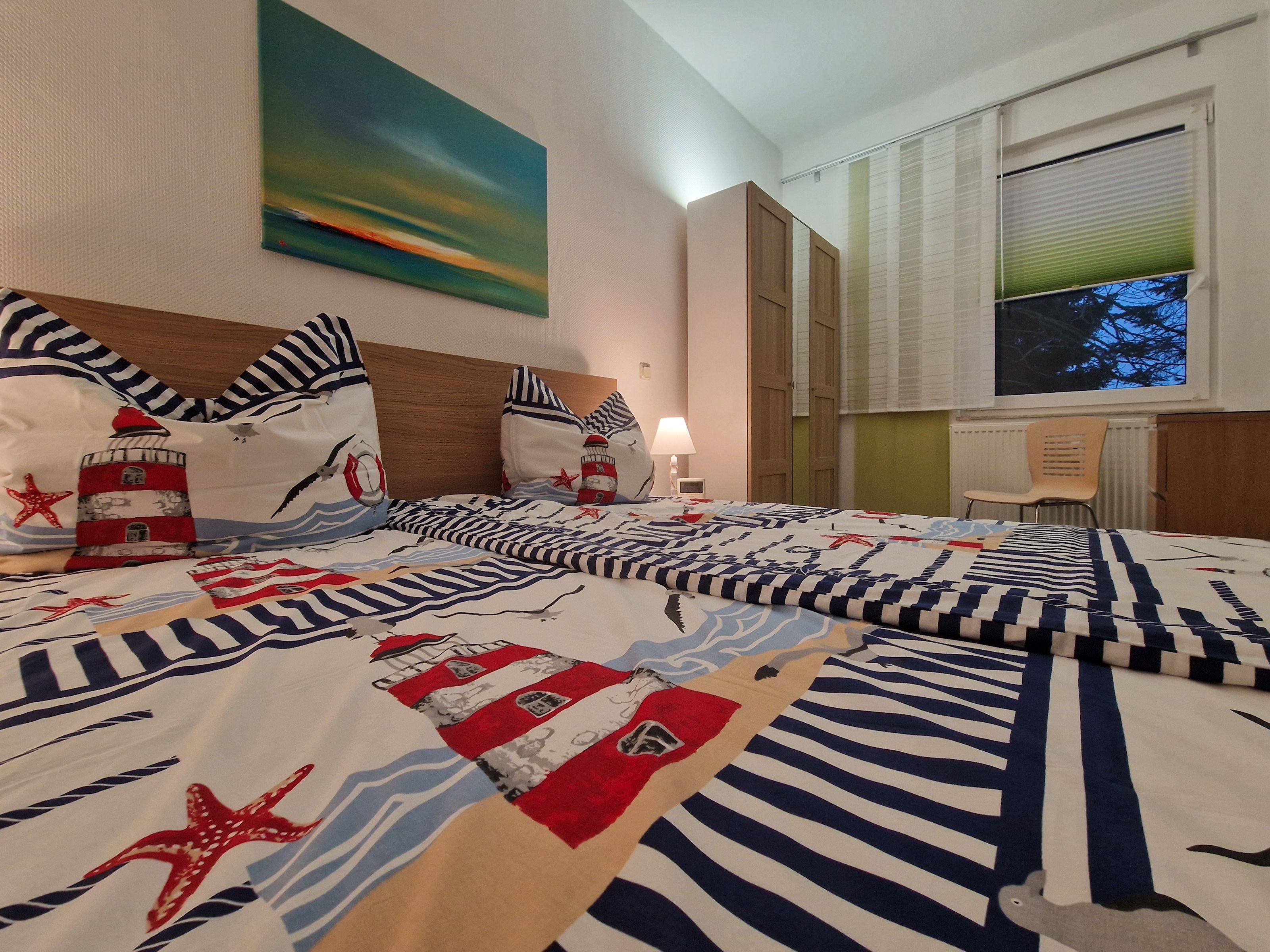 Im Schlafzimmer steht Ihnen ein großes Doppelbett und ein Kleiderschrank mit ausreichend Stauraum zur Verfügung. Die vollständig ausgestattete Küchenzeile ist in einem separaten Raum untergebracht, und von dort aus haben Sie direkten Zugang zu Ihrem privaten Balkon, der nach Süden ausgerichtet ist - der perfekte Ort, um das herrliche Ostseewetter zu genießen.