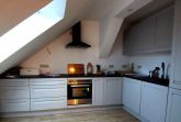 Die Wohnung im Obergeschoss verfügt über eine große, gemütliche Wohndiele, einen großräumigen Wohn-Essbereich in Verbindung mit einer voll ausgestatteten Küche, 2 Schlafzimmer sowie ein modernes Bad und eine weitere große Toilette.