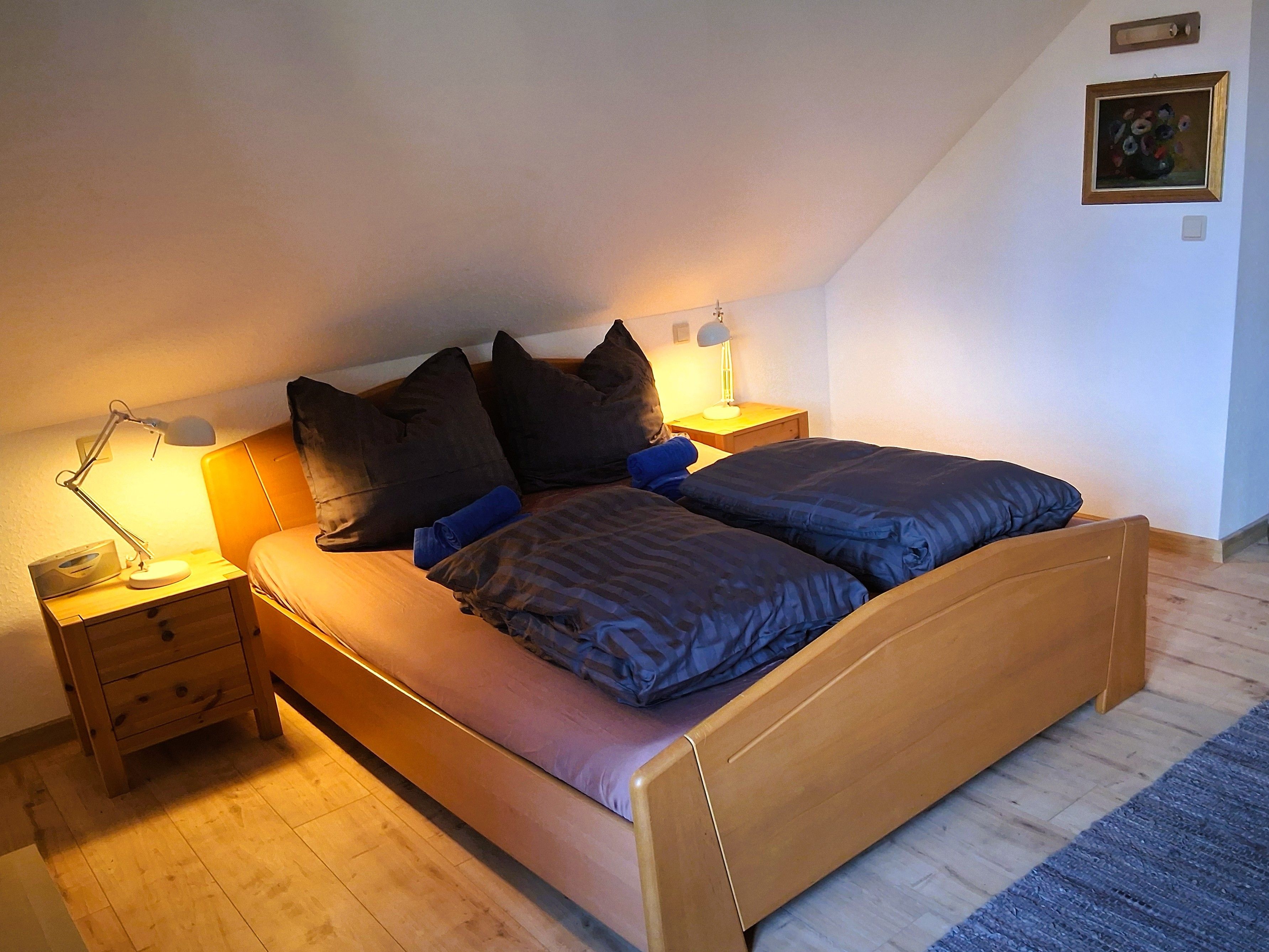 Über eine Innentreppe erreichen Sie den Spitzboden mit zwei weiteren großen Schlafzimmern. Auf der großen Dachterrasse (19 m²) mit Sitzgruppe, Liegen und Grill können Sie im Schutz zweier stattlicher Eichen den Ausblick genießen und es sich richtig gut gehen lassen.
