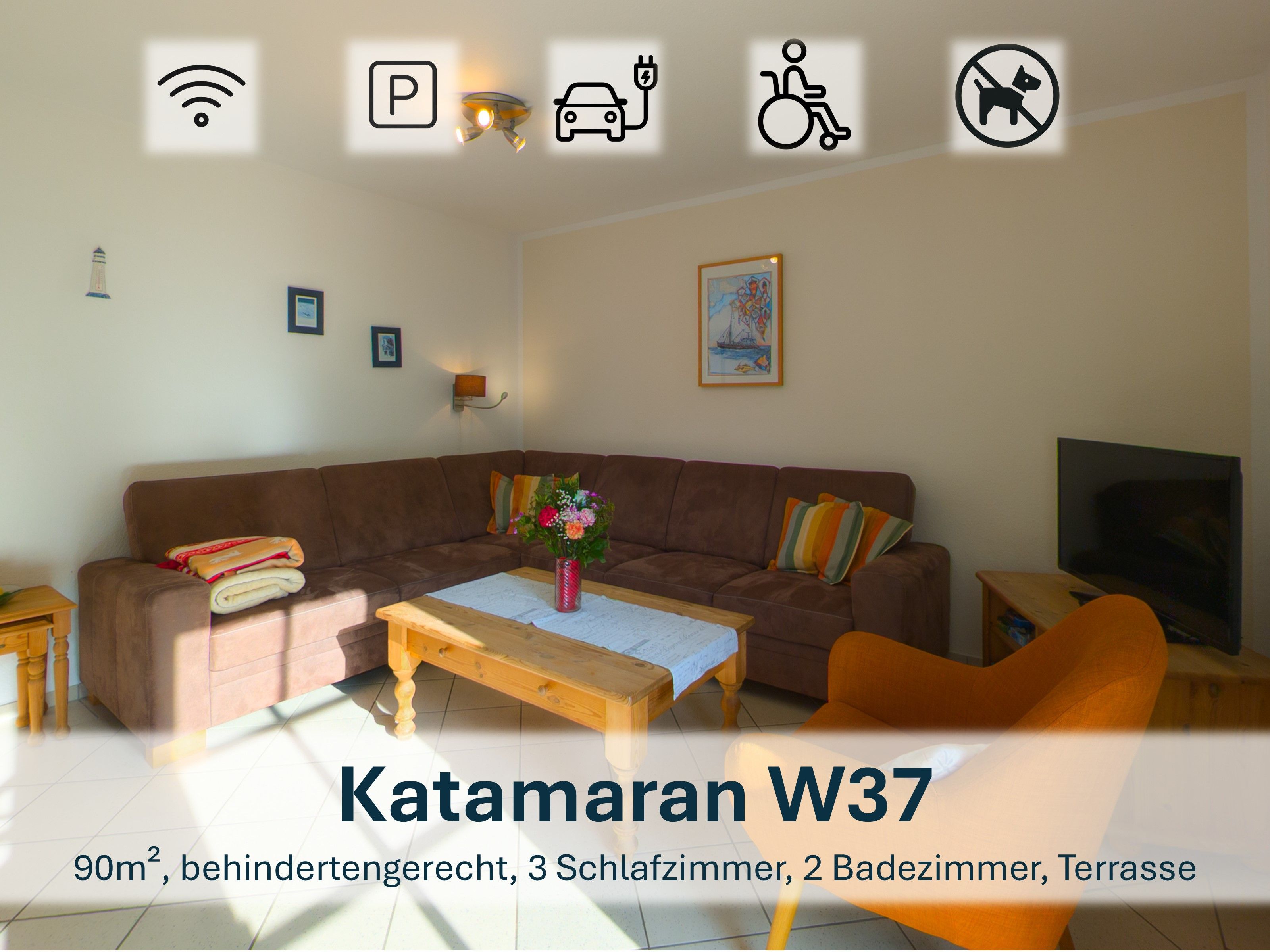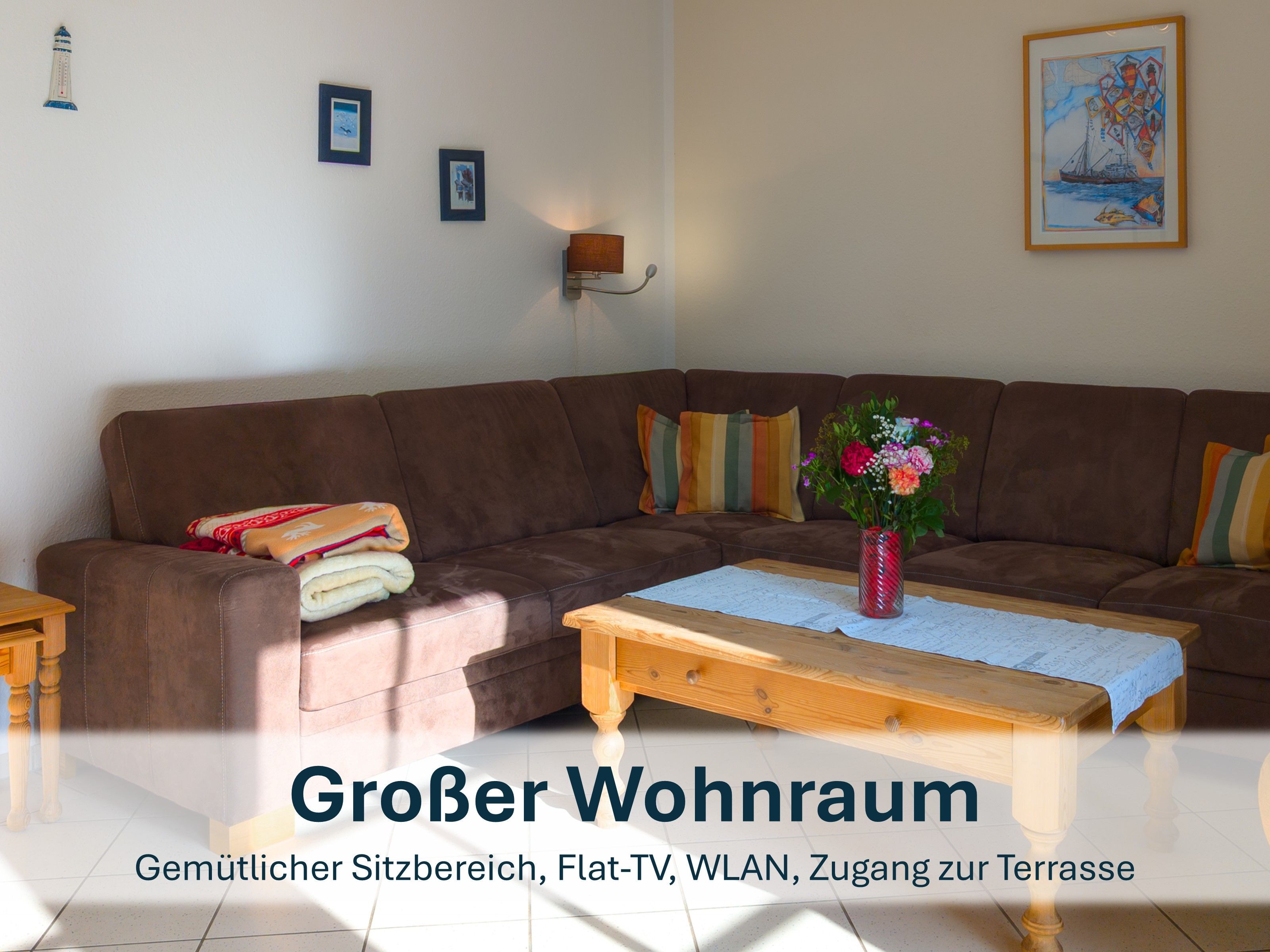 Hinweis: Die Fotos bilden die Ausstattung der Hauskategorie Katamaran I ab. Die Optik des Mobiliars weicht in den einzelnen Objekten vom Modell (Nr. 47) ab.
