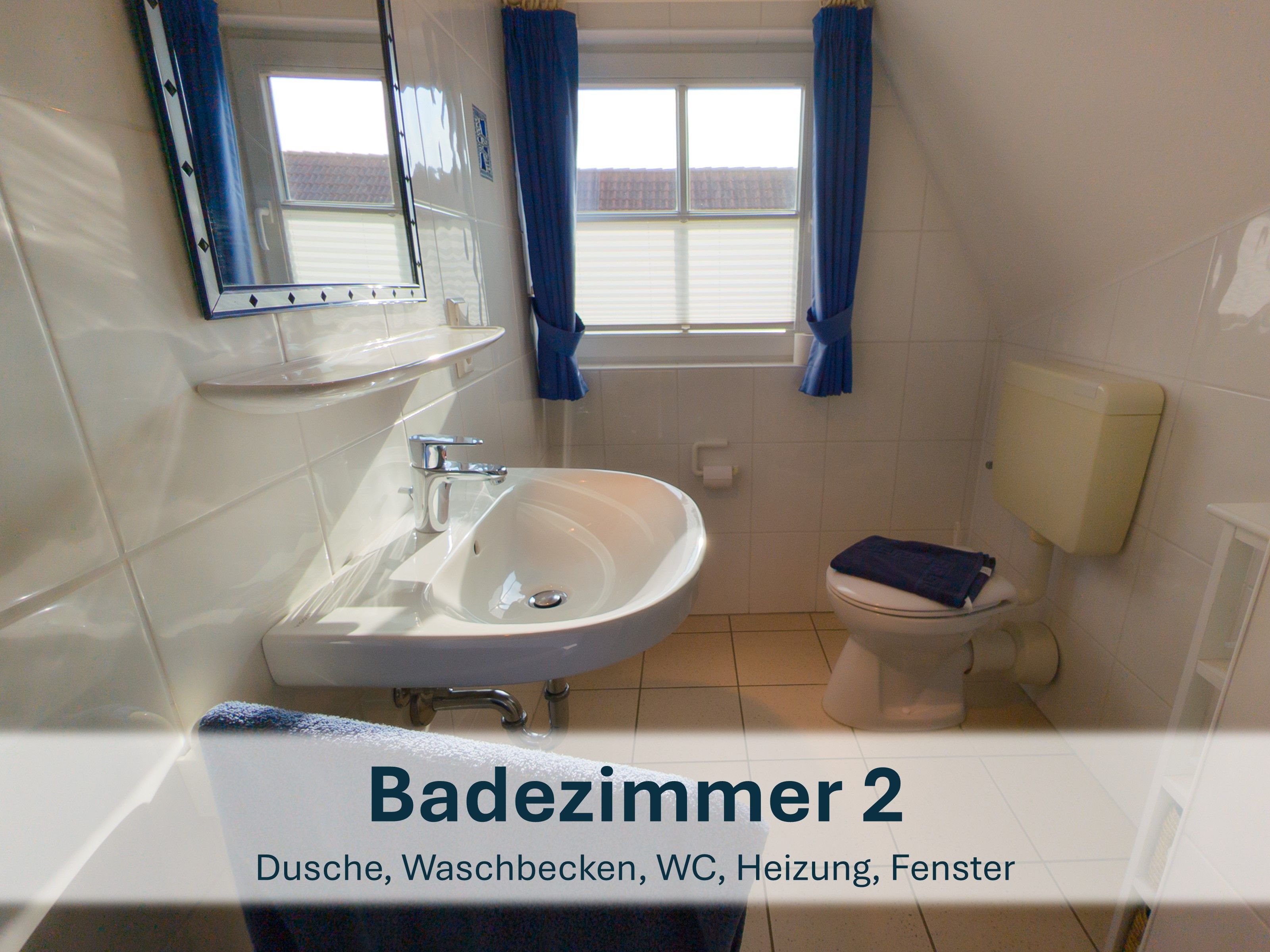 Zwischen den beiden Zimmern liegt das zweite Badezimmer mit Dusche, WC und Waschbecken.