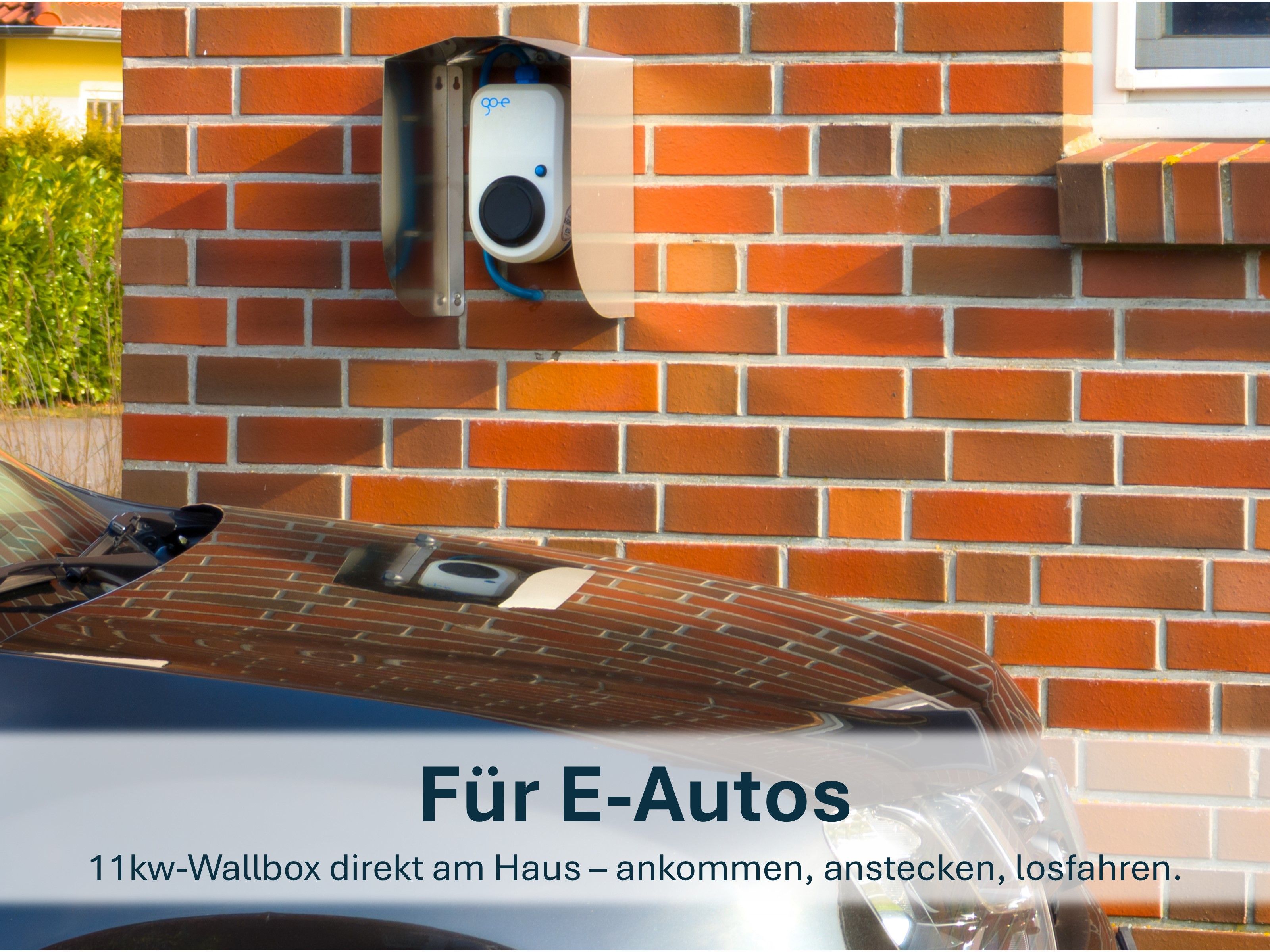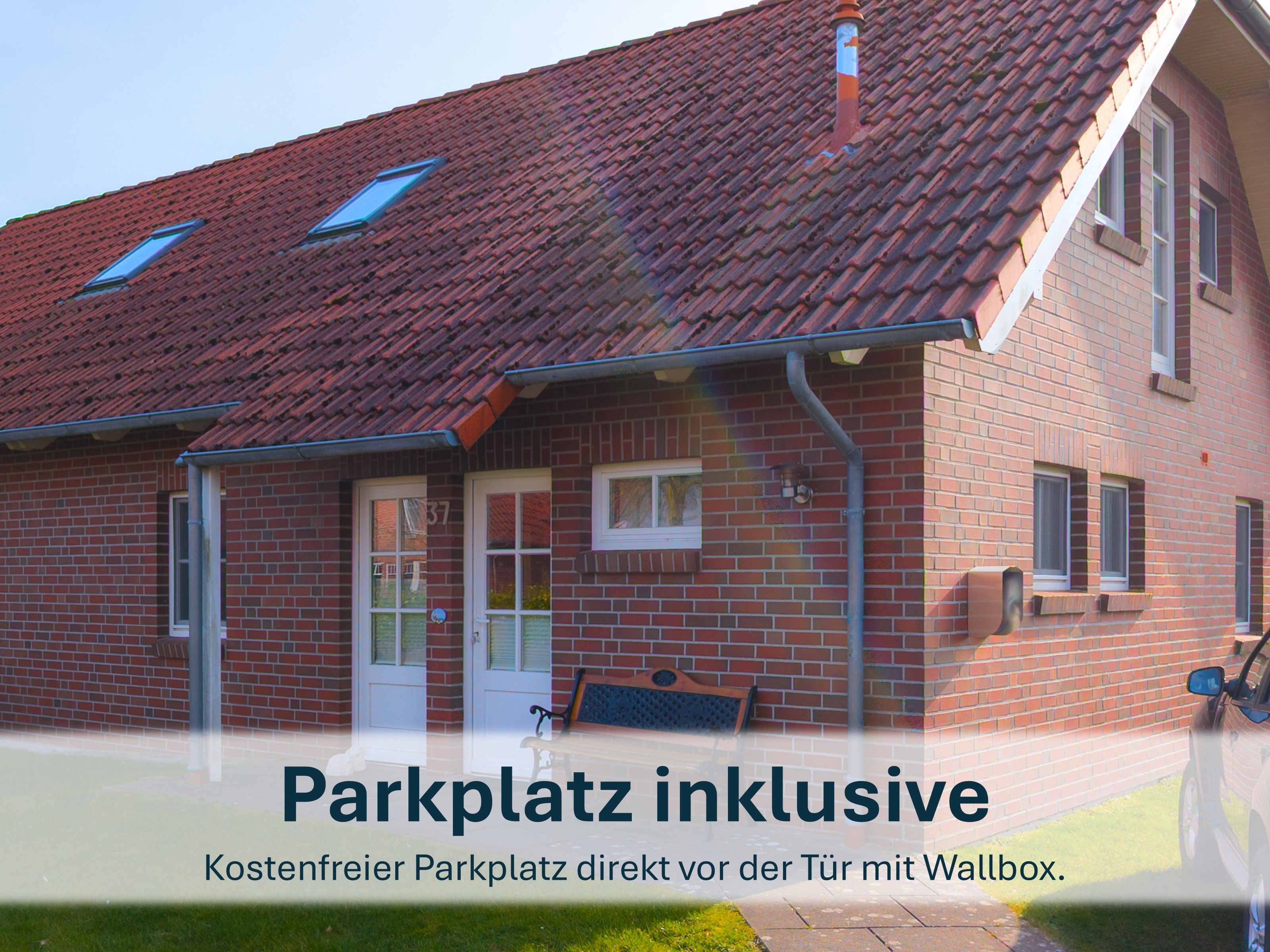 Zwei PKW-Stellplatz befinden sich direkt am Haus und sind kostenfrei. Für E-PkW steht eine hauseigene Wallbox zur Verfügung.