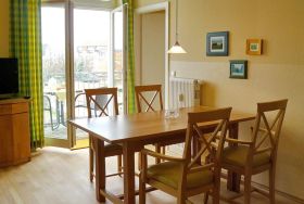 Die Ferienwohnung liegt in Kühlungsborn-West, direkt an der Promenade und ist nur 50 Meter vom feinsandigen Ostseestrand entfernt. Sie befindet sich im zweiten Obergeschoss auf der Westseite des Apartmenthauses.