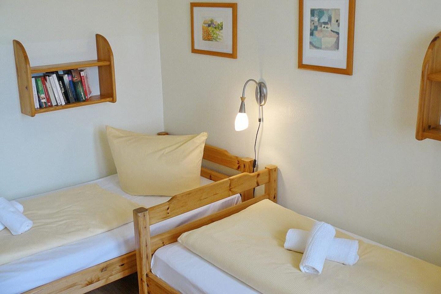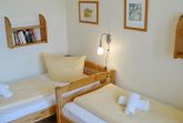 Die Ferienwohnung ist über den Aufzug zu erreichen und verfügt über drei Zimmer, davon zwei separate Schlafzimmer mit einem Doppelbett (2 x 0,90 x 2,00) bzw. zwei Einzelbetten (2 x 0,90 x 2,00). Ein Kinderbett kann gegen Entgelt aufgestellt werden und auf Wunsch könnt ihr einen Hochstuhl hinzubuchen. Im gemütlichen Wohnzimmer steht euch eine TV-HiFi-Anlage zur Verfügung. Vom Balkon aus könnt ihr direkt das Meer überblicken.