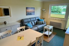 Das Appartement, im Sommer 2025 komplett renoviert, ist für 3 Personen geeignet und verfügt über ein Wohn-/Schlafzimmer mit Doppelbett. Vom Wohnzimmer aus geht es auf die möblierte Terrasse mit Blick auf den anliegenden See und zum zweiten Schlafzimmer mit Einzelbett. Die Küche ist mit einer komplett ausgestatteten Einbauküche eingerichtet. Weiterhin verfügt das Appartement über ein Duschbad. Für Ihren PKW steht ein eigener Stellplatz auf dem Parkplatz zur Verfügung. Zum Nordseedeich sind es nur rund 150m, ebenso wie zum Bäcker. Restaurants sind fussläufig in ungefähr 500m zu erreichen. Bis zum Hafen Strucklahnungshörn, von wo die Ausflugsschiffe in das Wattenmeer abfahren und frische Krabben und Fisch gekauft werden kann, ist nur rund 1500m entfernt.