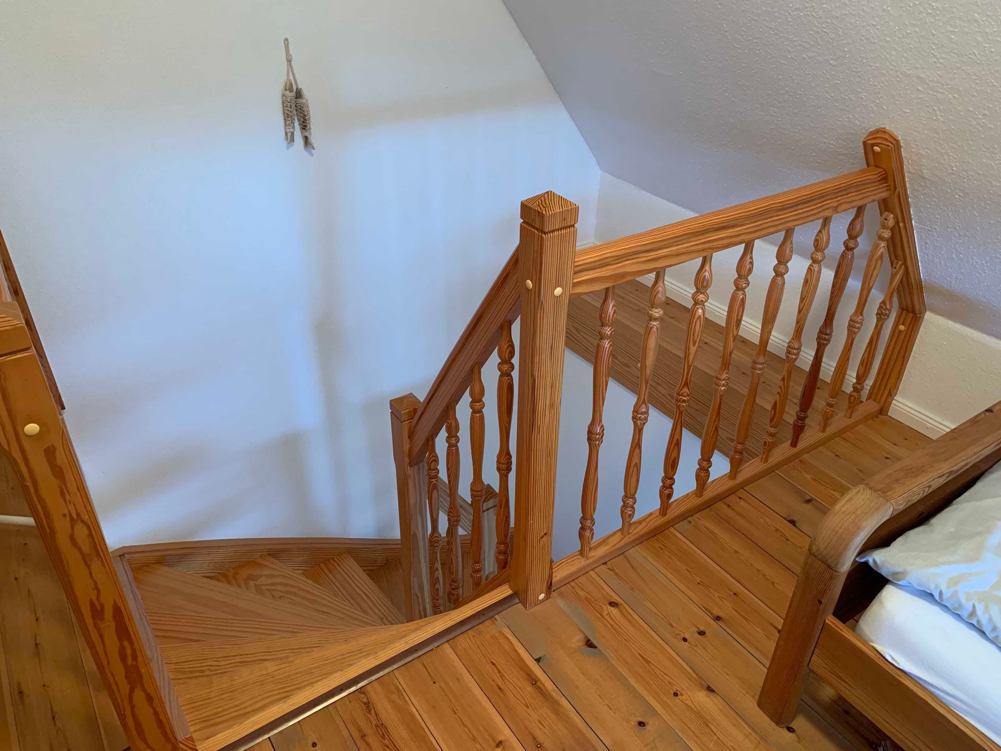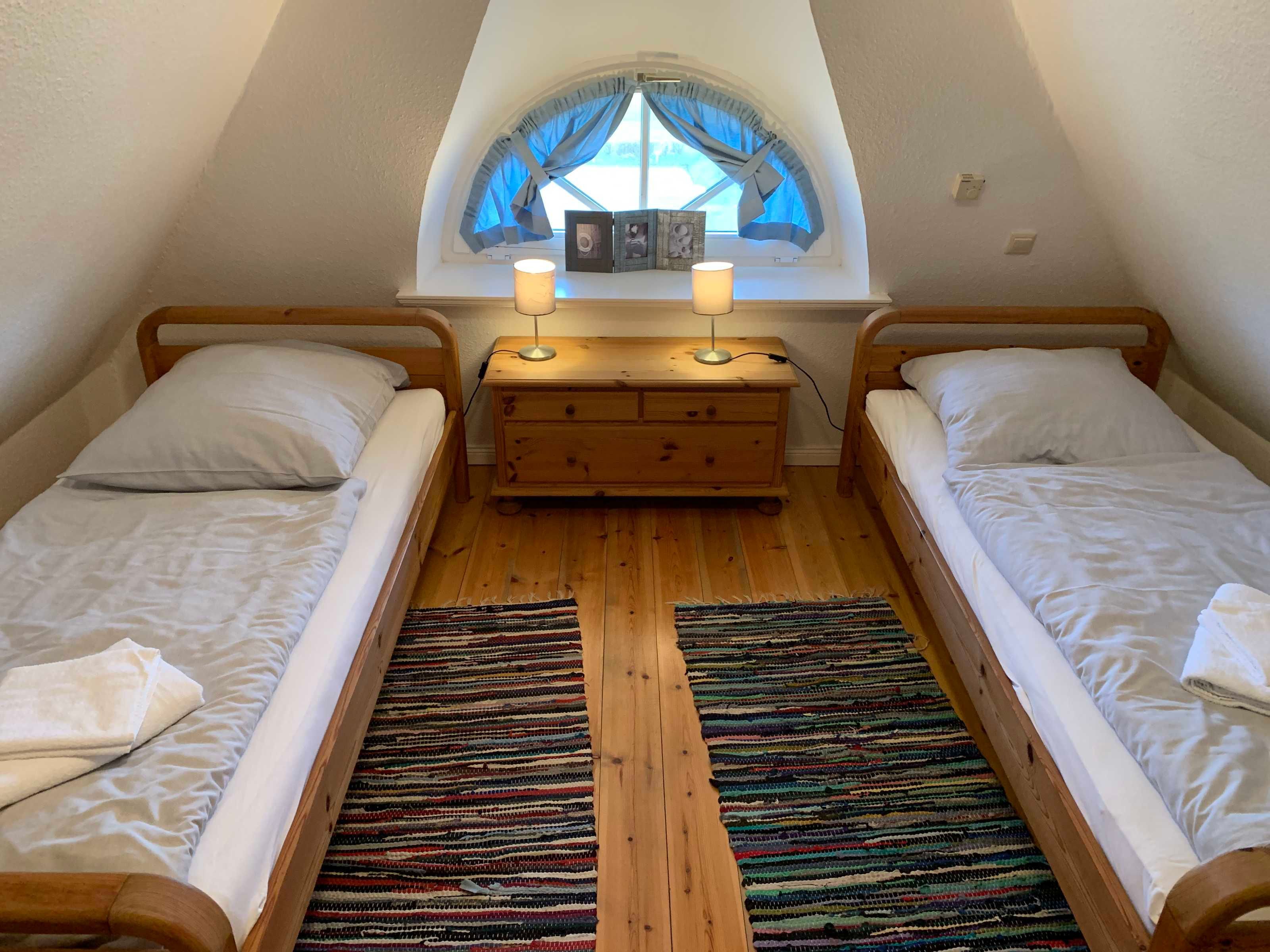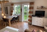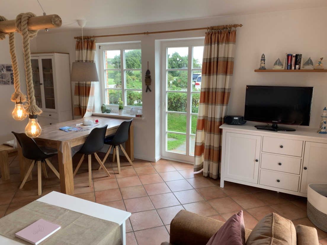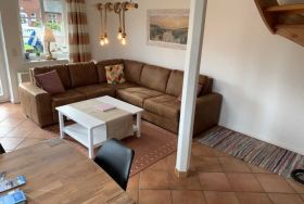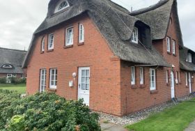 Der Friesenhof ist ein im typisch friesischen Stil erbautes Reetdachgebäude mit eigenständigen Hausteilen, gelegen im Kurzentrum Nordstrand. Der Hausteil ist ca. 90qm groß und ist für bis zu 6 Personen geeignet. Im Erdgeschoss befinden sich das geräumige Wohnzimmer mit Wohn- und Essbereich, die seperate komplett ausgestattet Einbauküche mit Spülmaschine, Mikrowelle usw. Vom Flur aus ist ein zusätzliches Gäste-WC zu erreichen, und vom Wohnzimmer aus geht es auf die möblierte zum Süden liegende Außenterrasse mit eigenem Strandkorb. Zwei Schlafzimmer, eines mit einem Doppelbett und ein weiteres mit zwei Einzelbetten, sowie Dusche/WC befinden sich im 1. Stock, ein drittes Schlafzimmer mit ebenfalls zwei Einzelbetten im oberen als Galerie ausgebauten Giebelzimmer.
