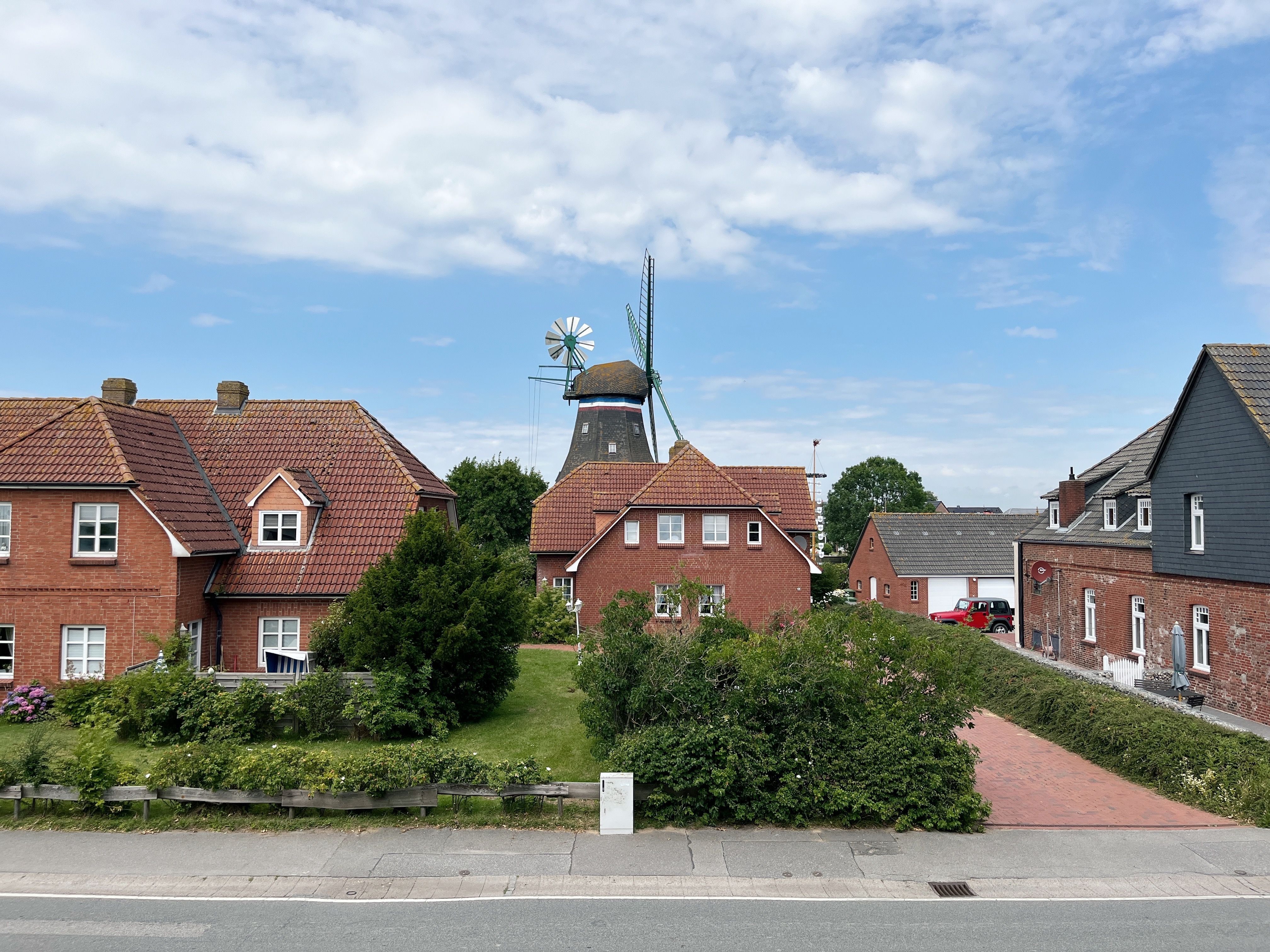Freuen Sie sich auf ein behagliches Doppelbett mit Blick auf die historische Engelmühle, eine charmante Küchenzeile mit integrierter Waschmaschine, ein modernes Duschbad und ein großzügiges Wohnzimmer mit einladender Essecke. Der große, liebevoll eingerichtete Balkon mit Ausblick auf den Süderhafen lädt dazu ein, entspannte Stunden zu genießen ideal, um die vorbeiziehenden Schafe zu beobachten - der Deich nur 15 Meter entfernt liegt.