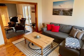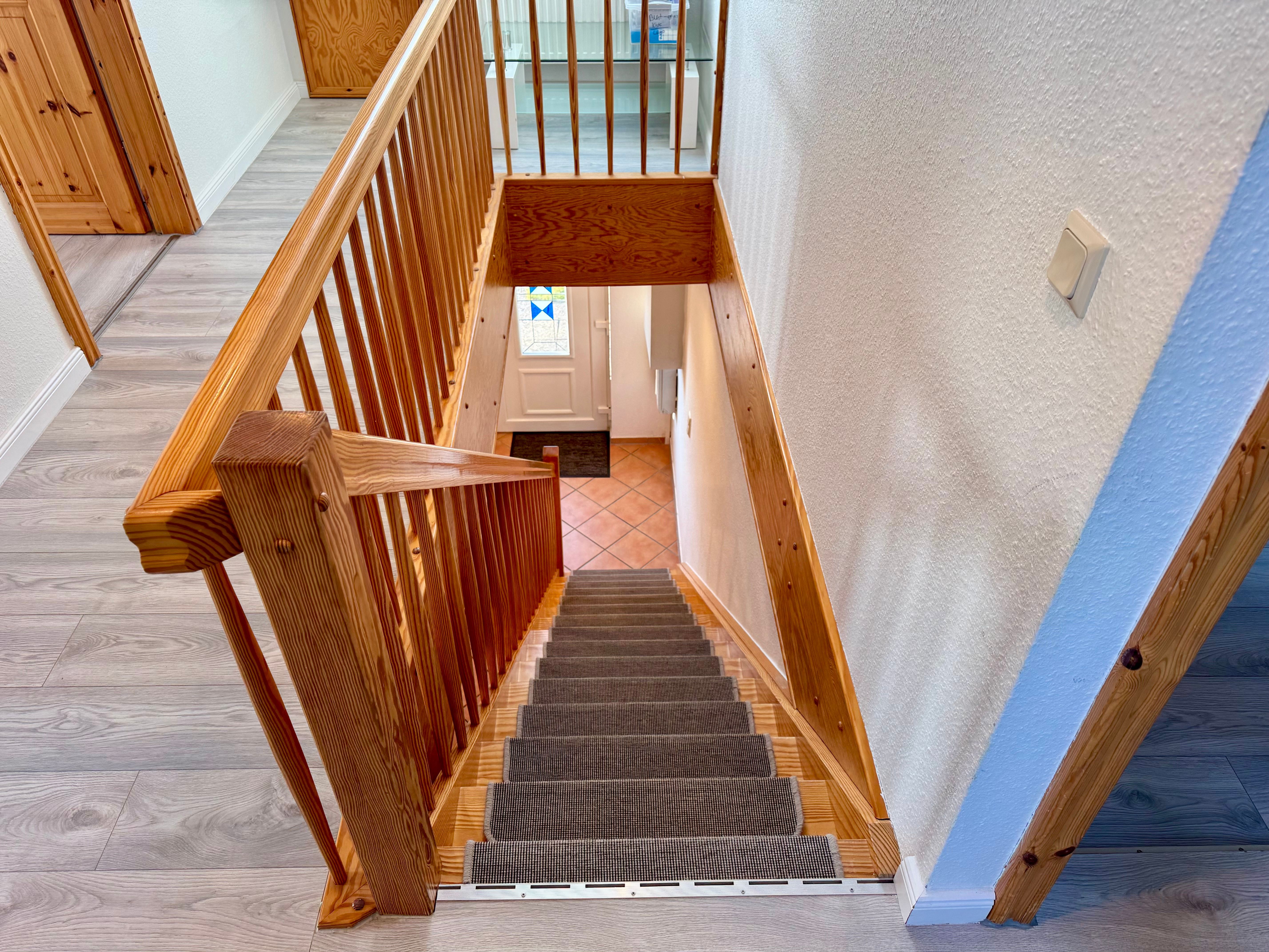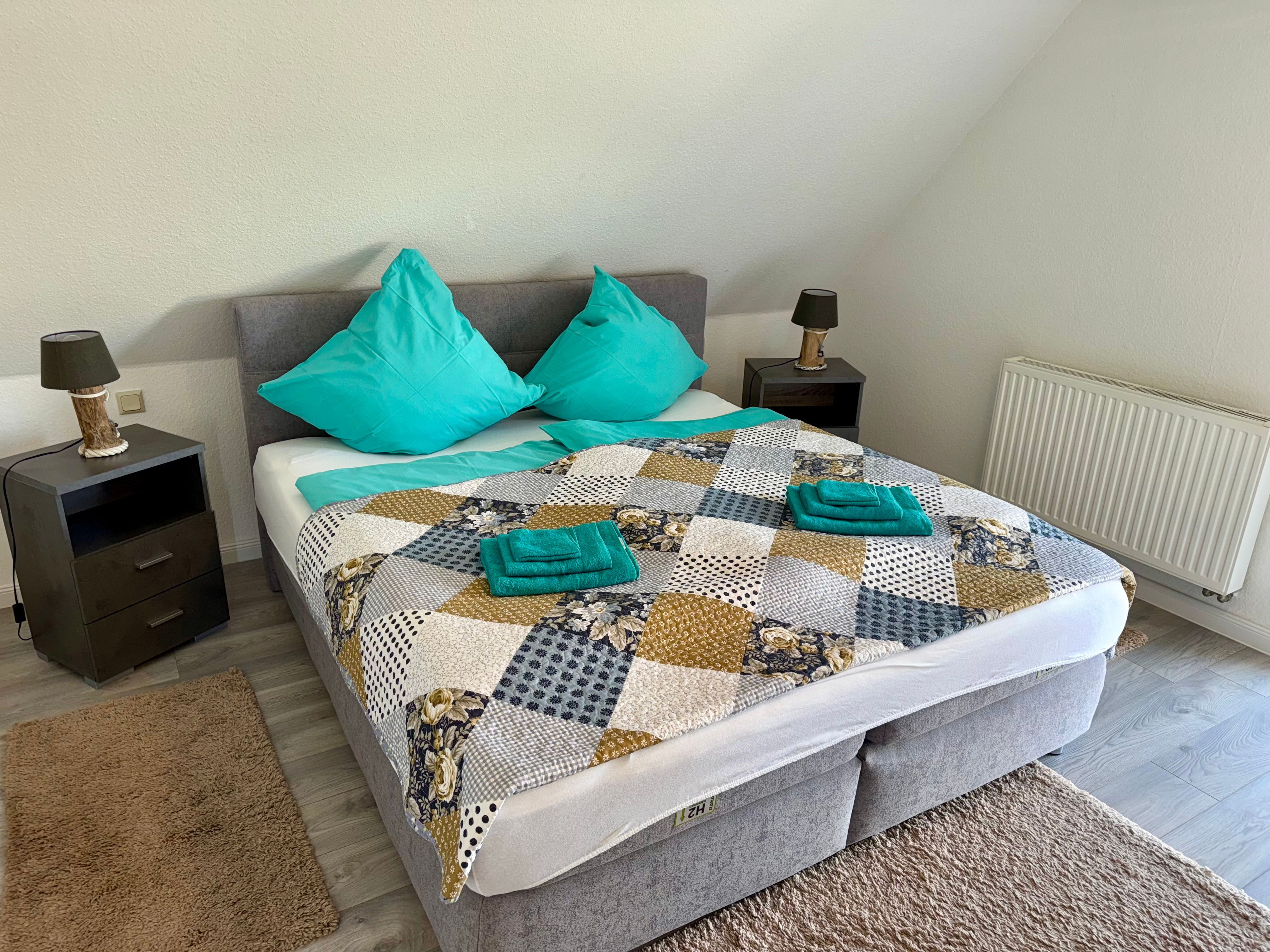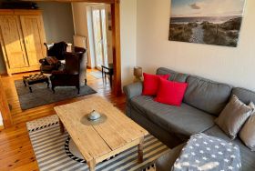 Im Obergeschoss erwarten Sie drei geschmackvoll eingerichtete Schlafzimmer: Ein Zimmer mit komfortablen Doppelbett, während die beiden weiteren jeweils Einzelbetten bieten. Zudem steht Ihnen im Obergeschoss ein stilvolles Badezimmer mit Badewanne zur Verfügung, während im Erdgeschoss ein weiteres Bad mit Dusche auf Sie wartet.